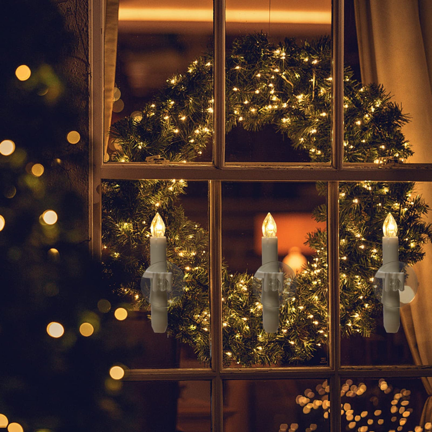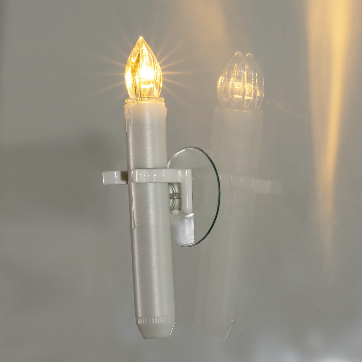 Raycare 12 Pcs Christmas Window Candles With 6 Hour Timer With Suction Cups, Double Brightness Flameless Taper Candle Battery Op