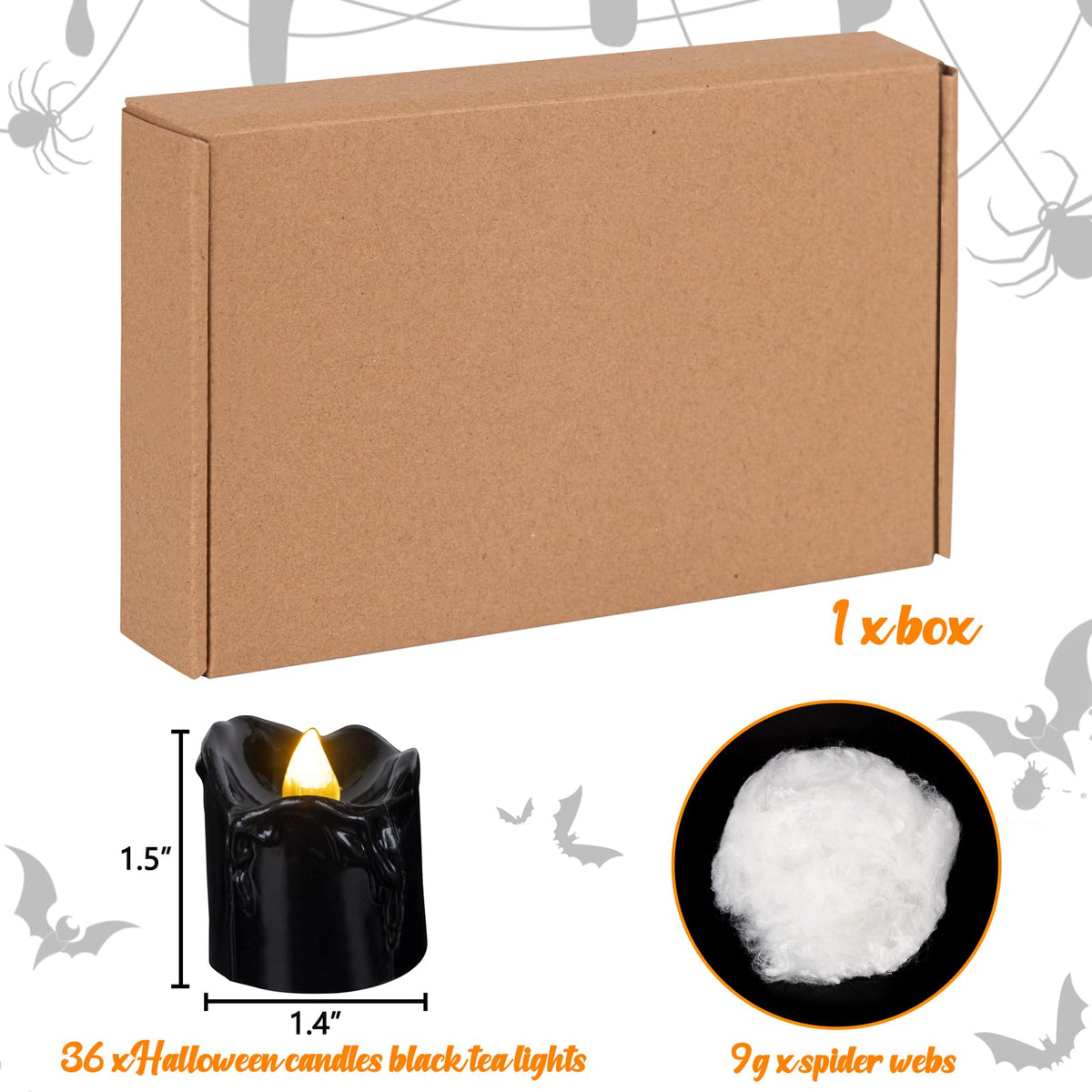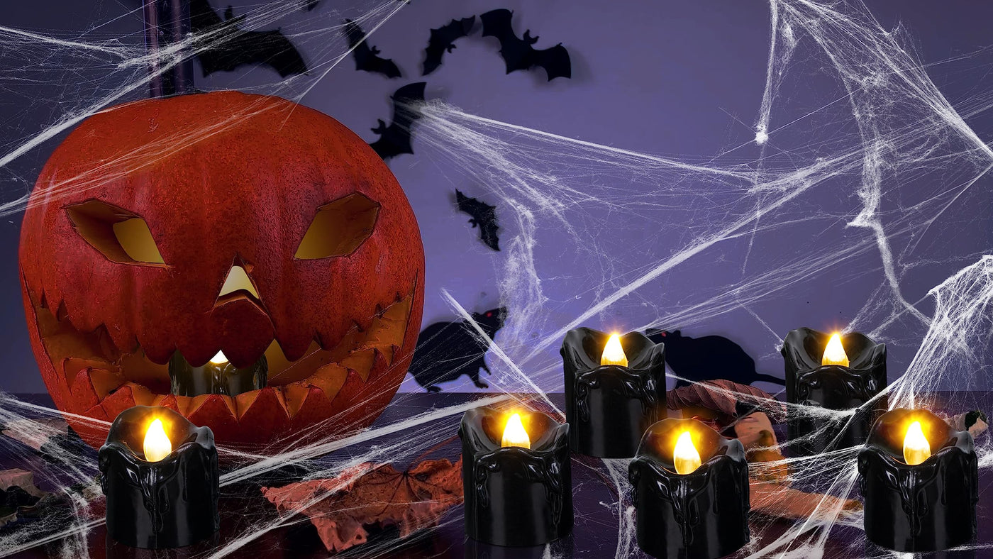 36Pcs Halloween Decorations Indoor Candles Black Tea Lights: Led Flameless Tealight Battery Operated Table Decor With Spider Webs (No Timer&Remote)
