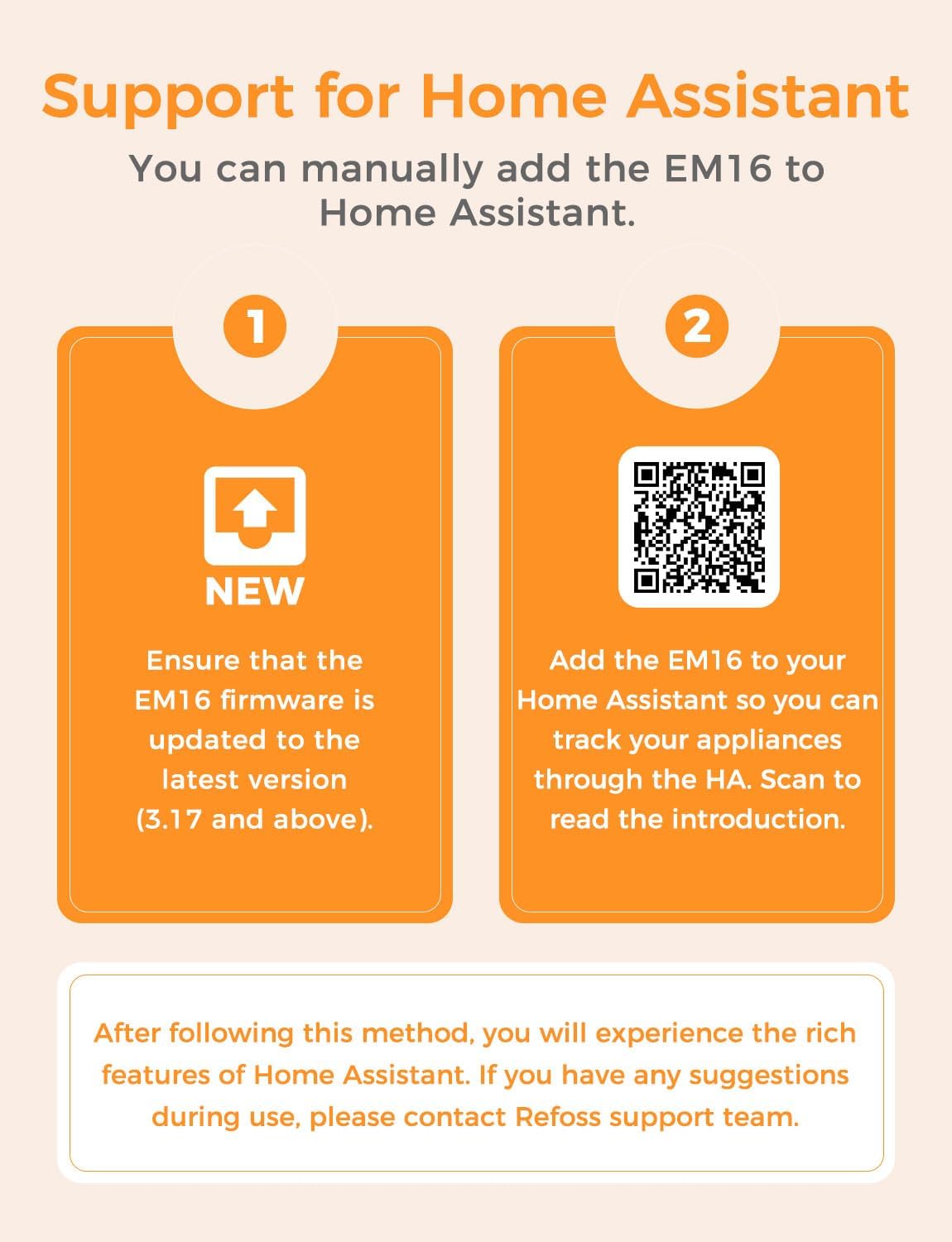 Q: Is the energy monitor compatible with Home Assistant?A: Yes, the Smart Home Energy Monitor is compatible with Home Assistant. By updating the firmware through the Refoss app, users can seamlessly integrate their energy management system with their smart home platform for centralized control and automation.
