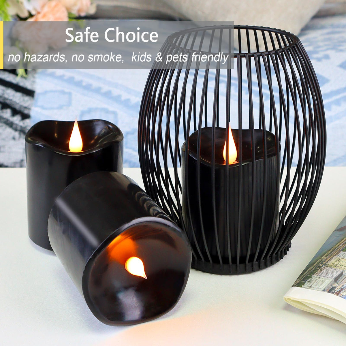 Techlong Black Flameless Candles, Halloween Candles Battery Operated With Remote Timer, 3D Moving Flame Flickering Last 600+ Hou