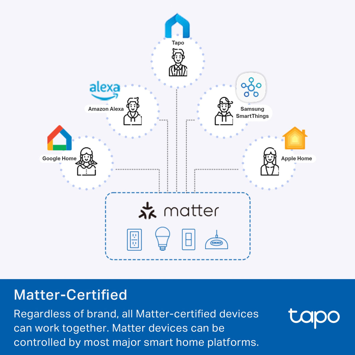 Experience The Future Of Smart Home Convenience And Sustainability With The Tapo P110M Smart Wi-Fi Plug, Matter-Certified With Energy Monitoring. This Innovative Device Empowers You To Control Your Connected Devices With Ease, Using Simple Voice Commands Through Your Favorite Assistants Like Alexa, Siri, Google Home, Or Samsung Smartthings. The Tapo P110M Goes Beyond Just Control. It'S Also An Energy Efficiency Champion. Gain Valuable Insights Into Your Energy Consumption With Detailed Statistics, And Leverage Those Insights To Estimate Your Bills And Potentially Save Money. Safety Is Paramount, And The Tapo P110M Prioritizes It With Customizable Power Thresholds And A Smart Charge Guard Feature, Preventing Overcharging And Ensuring The Security Of Your Connected Devices. Plus, The P110M Boasts A Compact Design-It Fits Seamlessly Into Your Existing Setup Without Blocking Neighboring Outlets. Upgrade Your Home With The Tapo P110M, And Experience The Power Of Smart Control, Energy Efficiency, And Ultimate Convenience.