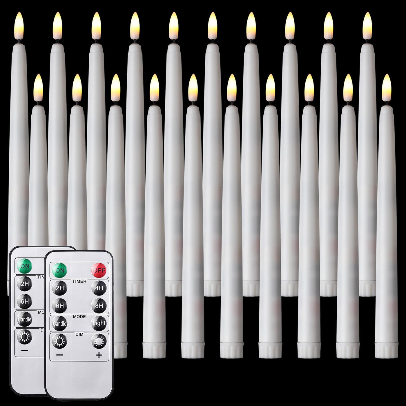 Battery Powered Candles Led Taper Plastic Candles Are Powered By 2 Aaa Batteries (Not Included), So You Don'T Have To Worry About The Influence Of Flame And Dust Anymore. These Battery Tapered Candles Look Like Real Candles, But They Won'T Drip Wax And Have No Smell. Candle Light Mode: Battery Operated Candlesticks Have Flickering Or Non Flickering Candlelight. Candle Mode Light Flashing Is More Like A Real Candle, And Non Flashing Mode Provides Stable Light. Widely Usage: Christmas Battery Operated Candles Can Widely Be Applied At Home, Hotel, Church, Wedding, Party, Holiday, Thanksgiving, Christmas And Daily Desktop, Window, Dining Table And Other Decorations. Material: Plastic Color: White Diameter: Approx. 0.75 Inch Height: Approx. 9.65 Inch Wick Type: Realistic 3D Wick Timer: 2/4/6/8 Hours Remote: 10 Keys Remote Light: Flicker Like Flame Or No Flicker Brightness: Increase Or Decrease Brightness Battery: 2 Aaa Batteries (Not Included) Package Information: 20 X White Led Taper Candles 2 X Remote Controls With 10 Keys Note: Manual Measurement, Please Allow Slight Errors On Size. The Color May Exist A Slight Difference Due To Different Screen Displays. The Battery Life Is Related To The Frequency And Length Of Use Of The Product. If The Frequency Of Use Is High, And One-Time Use Long, The Battery Life Will Be Relatively Short.