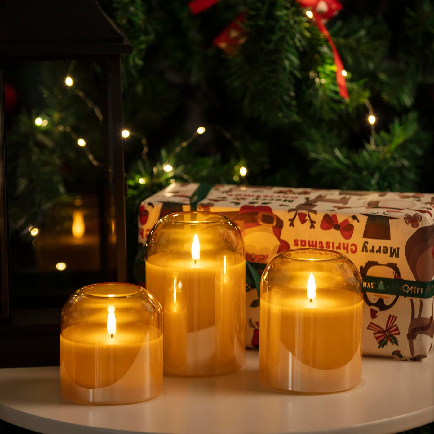 These Realistic Glass Flameless Candles Create A Warm, Inviting Glow Without The Risk Of An Open Flame. Powered By 3Aa Batteries(Not Included), These Candles Feature An Led Light-Up Flame That Flickers Just Like A Real Candle. With Multiple Lighting Modes And Timer Options, They Set The Perfect Ambience For Any Occasion. Whether Used Individually Or Grouped Together, Their Realistic Wax Designs And Glowing Flames Will Enhance The Atmosphere And Lighting In Any Room. Cleanup Is Easy - There'S No Wax Mess And They Shut Off Automatically For Added Safety. Bring The Cozy Charm Of Candlelight Indoors Safely And Conveniently With These Versatile Flameless Candles.