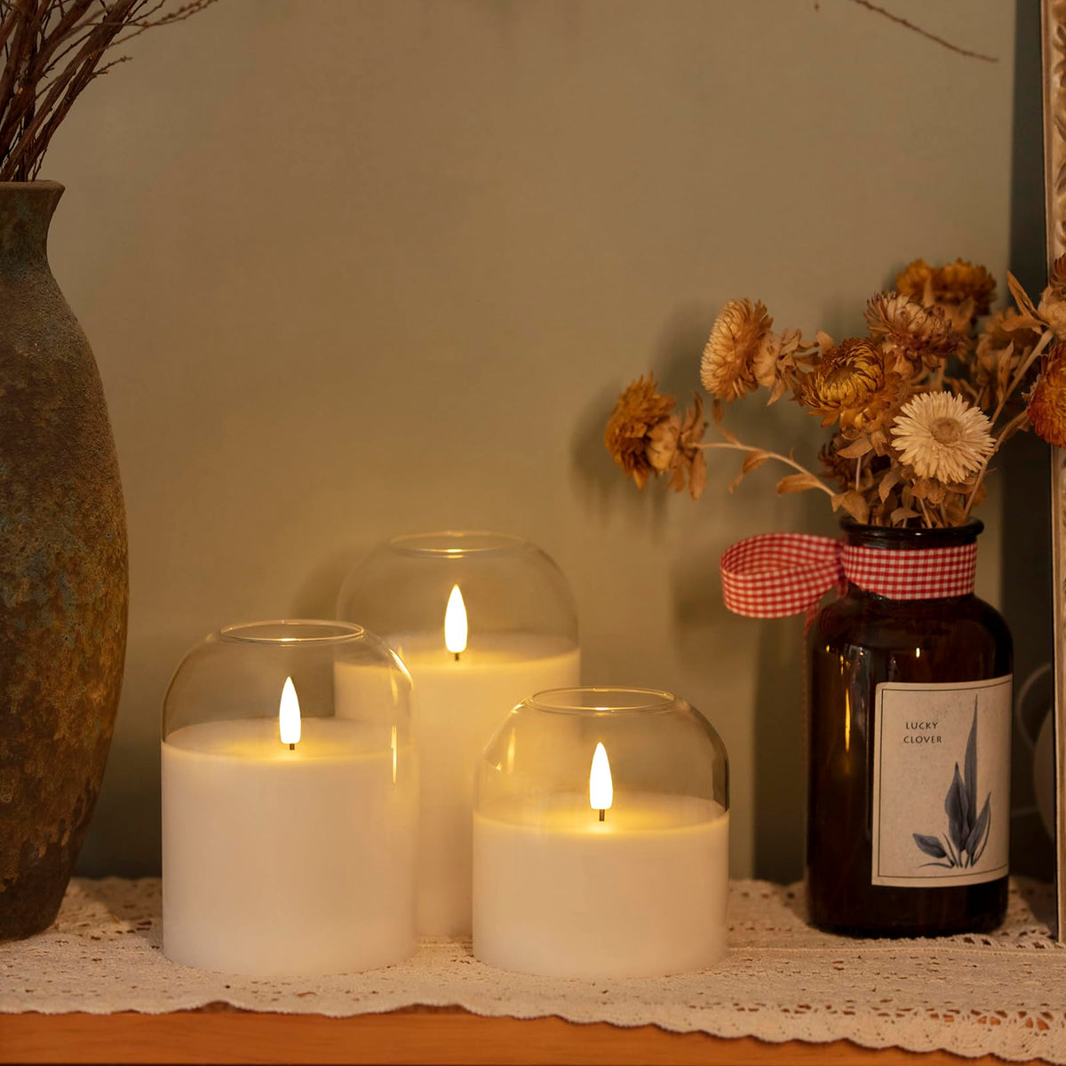 These Realistic Glass Flameless Candles Create A Warm, Inviting Glow Without The Risk Of An Open Flame. Powered By 3Aa Batteries(Not Included), These Candles Feature An Led Light-Up Flame That Flickers Just Like A Real Candle. With Multiple Lighting Modes And Timer Options, They Set The Perfect Ambience For Any Occasion. Whether Used Individually Or Grouped Together, Their Realistic Wax Designs And Glowing Flames Will Enhance The Atmosphere And Lighting In Any Room. Cleanup Is Easy - There'S No Wax Mess And They Shut Off Automatically For Added Safety. Bring The Cozy Charm Of Candlelight Indoors Safely And Conveniently With These Versatile Flameless Candles.