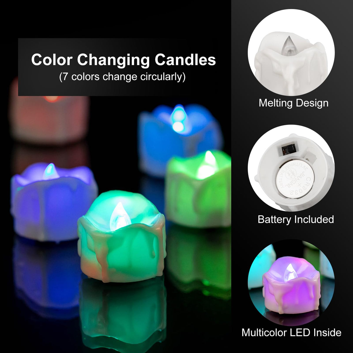 Windshell Color Changing Tealight Candles With Timer (White Base), Melting Design (Plastic), Battery Operated Multicolor Led Fla