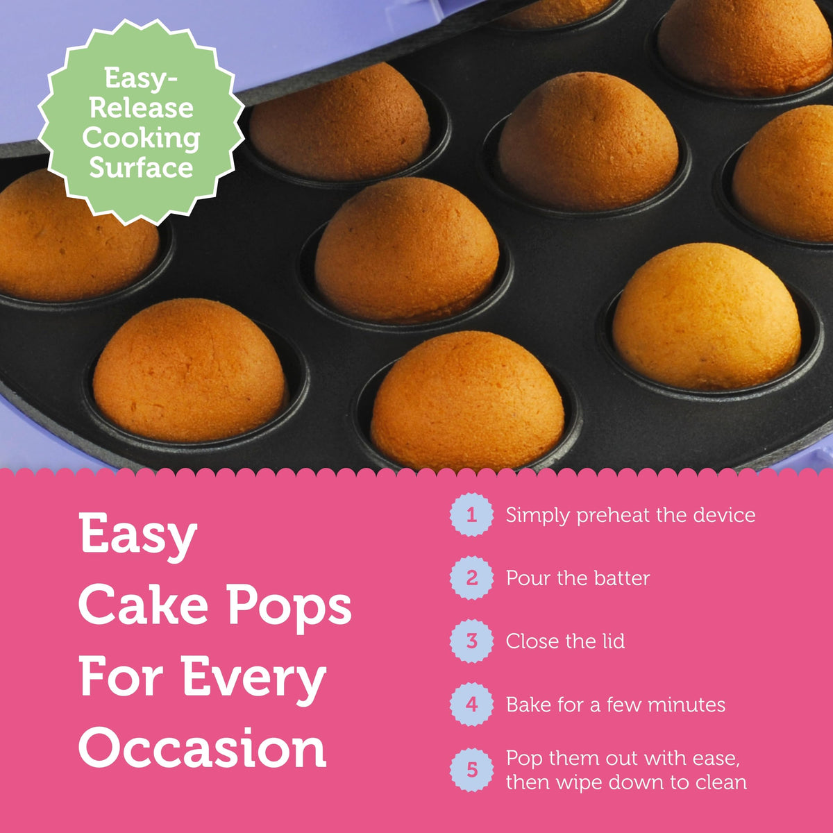 The Baby Cakes Cake Pop Maker Brings The Fun And Delicious Cake Pops Trend Into Your Own Kitchen. Bake 12 Cake Pops Or Donut Holes In Just Minutes. Add Sticks And A Touch Of Creative Decorating For Perfect Cake Pops In No Time! Bakes 12 Cake Pops Or Donut Holes. Includes Treat Sticks, Fork Tool, Cooling Stand. Nonstick Baking Plates. Power And Ready Lights. 1300 Watts.