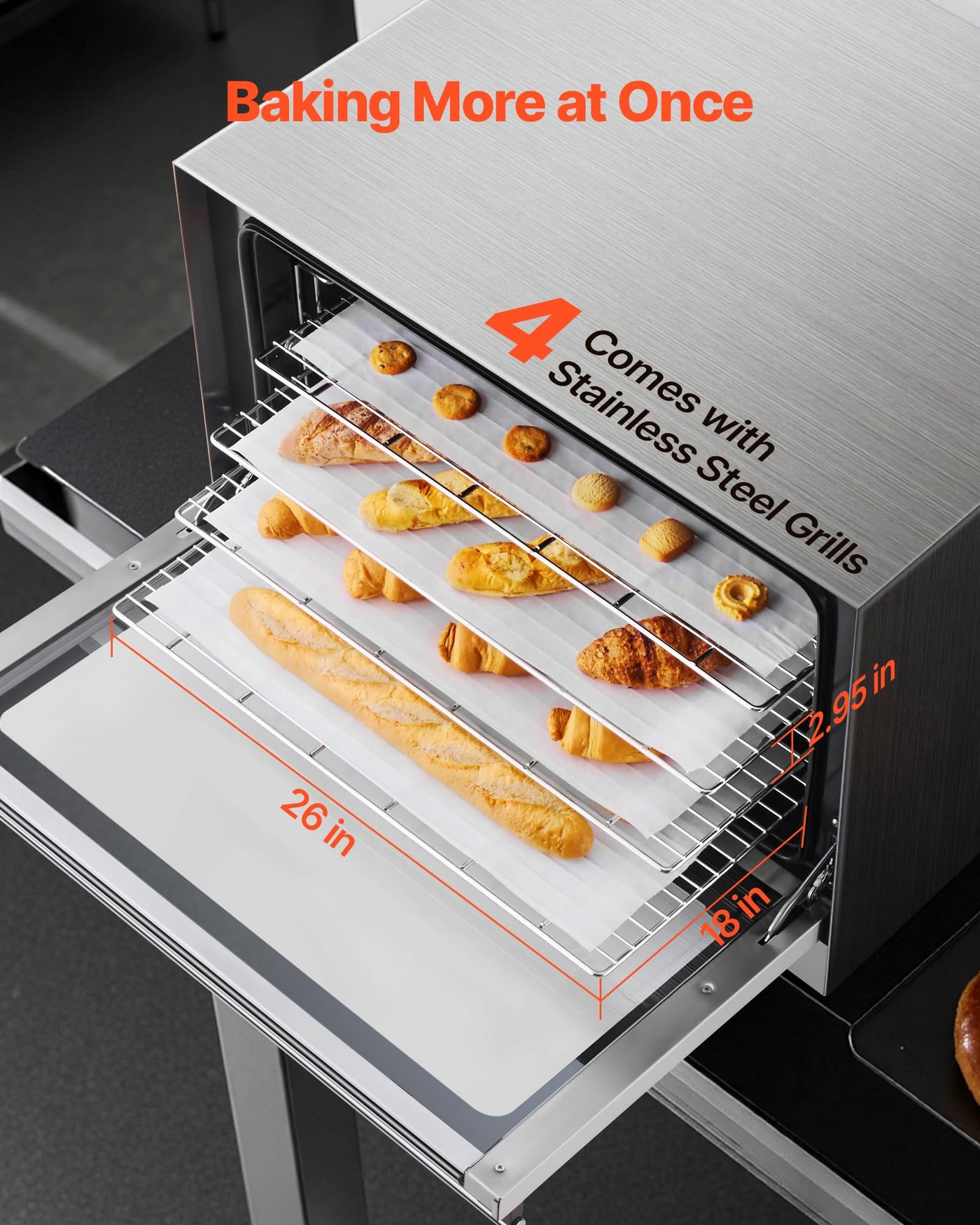 Vevor Commercial Convection Oven, 4.24 Cu.Ft Conventional Countertop Oven For Full-Size Pans, Electric Convection Ovens With 4 R