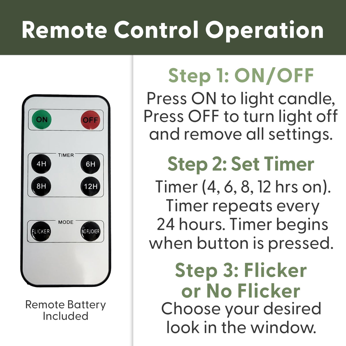 612 Vermont Battery Operated Led Window Candles With Timer, Remote Control, Warm White Flicker Or Steady On, Vtr1660P-4 (Pack Of