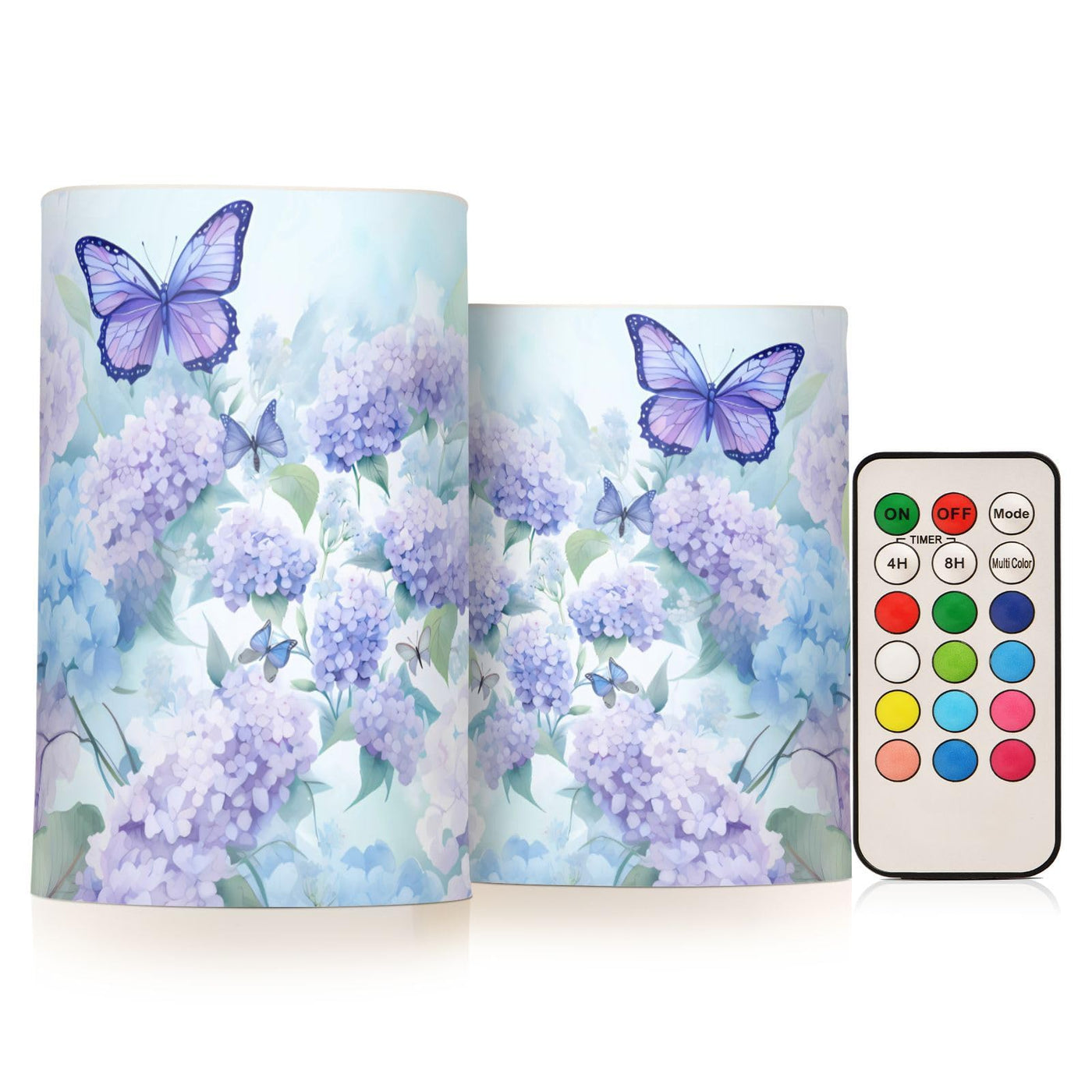 Alaza Blue Hydrangea Flowers With Butterflies Flickering Flameless Candles Battery Operated With Remote Timer,Tea Light Candles