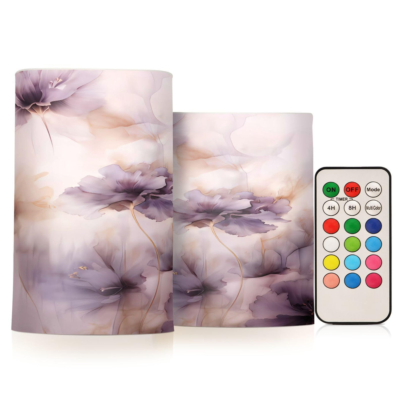 Alaza Purple Flowers Flickering Flameless Candles Battery Operated With Remote Timer,Tea Light Candles Led Pillar Votive Candles