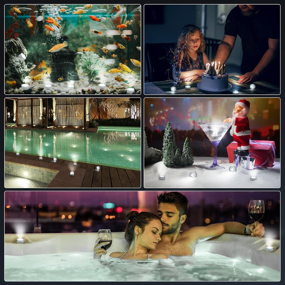 Q: Can these underwater lights be used for events like weddings or parties?A: Yes, these submersible LED lights are ideal for enhancing the atmosphere at weddings, parties, Halloween, and Christmas decor. Their RGB color options allow you to create vibrant displays.