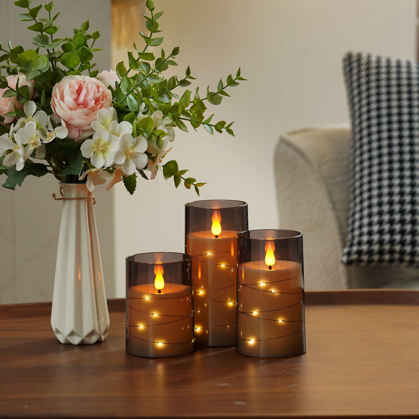 Amagic Grey Flameless Candles With Remote, Flickering Battery Operated Candles With Embedded Fairy Lights, Acrylic Led Candles W