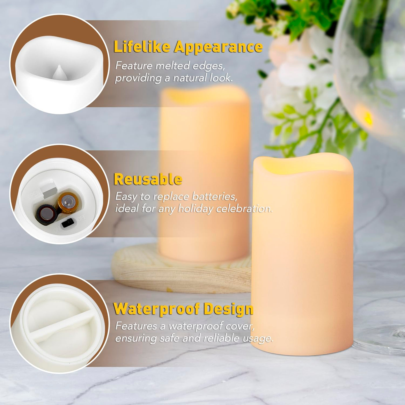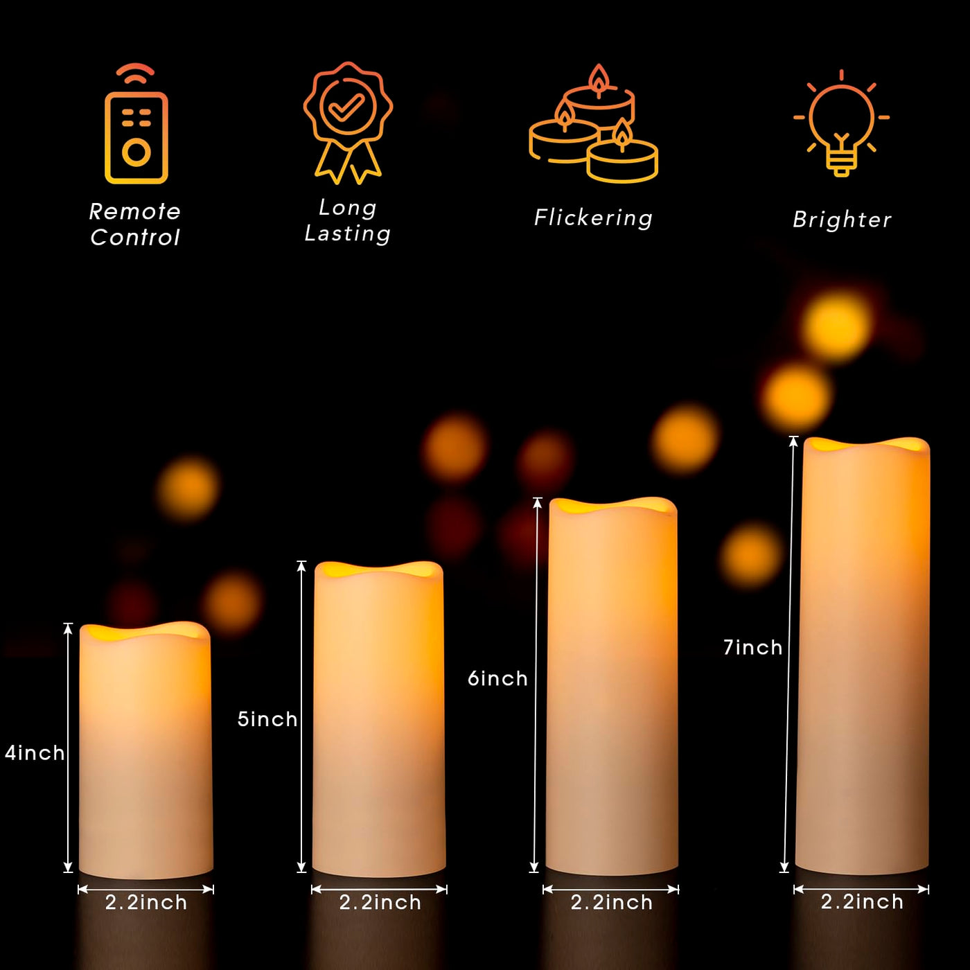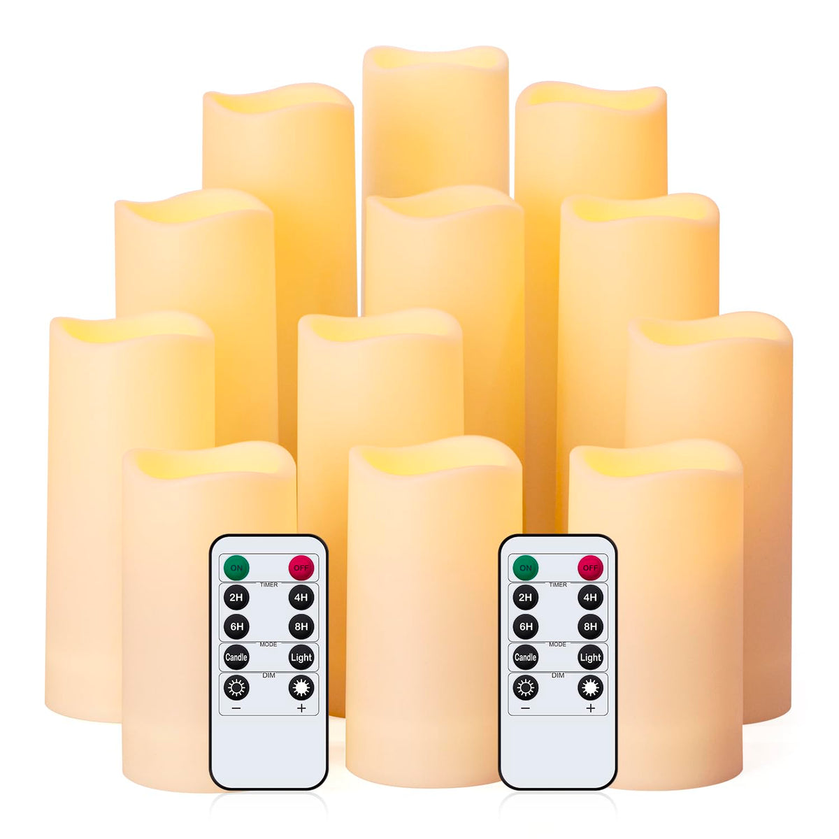 This Value For Money Set Of 12 Flameless Candles With 2 10-Key Remote Controls (D: 2.2 Inches, H: 4 Inches / 5 Inches / 6 Inches). Our Indoor & Outdoor Candles Lights Are Ideal Choice For Any Holiday Occasion Or Place Decoration Like Fireplace, Memorial, Church, Table Centerpiece, Living Room Table Decor.