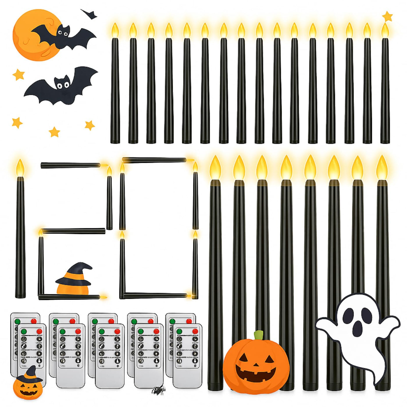 Features: Safe and realistic glow: Our flameless candle replicates the warm and cozy atmosphere of a real candle without the risk of open flames, smoke, or hot wax. Ideal for households with children and pets. Remote control and timer function: Use the included remote to DIY your lighting experience, adjust brightness, set timers, and choose light patterns to match your mood or activity. Specifications: Main material: ABS and LED electronic components Color: black Size: about 11 inches in height and 0.8 inch in diameter Package includes: 120 x Flameless candle 10 x Remote controls Notes: Manual measurement, please allow slight errors on size. The color may exist a slight difference due to different screen displays.