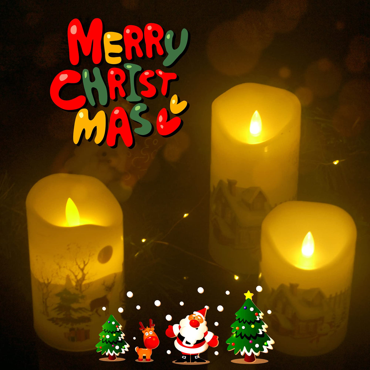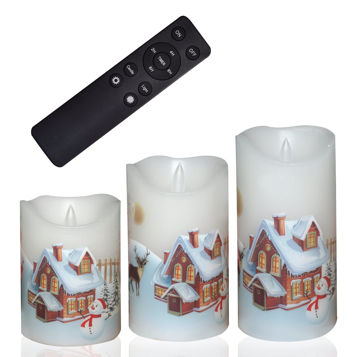 These Flameless Candles Which Have Xmas Elements Decals Are Specially Designed For Christmas Decorations. Christmas Led Candle Lights Create Holiday Atmosphere And Are Also Perfect Gifts. Specifications 1. Shell Material: Paraffin Wax. 2. Shape: Pillar. 3. Size: 3 Inches In Diameter And 4, 5, 6 Inches In Height Respectively. 4. Appearance Color: White. 5. Light Color: Amber. 6. Package Quantity: 3. 7. Battery Required: Each Candle Requires 2 Aa Batteries (Not Included). The Remote Control Requires 2 Aaa Batteries (Not Included).