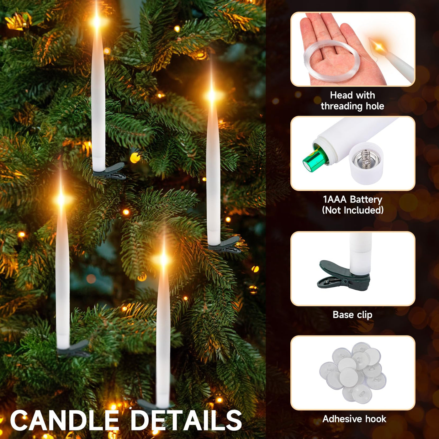 Dressvoguer 22 Pcs Christmas Tree Candles Lights Flickering Clip Flameless Led Taper Window Candles With Timer, Christmas Candle