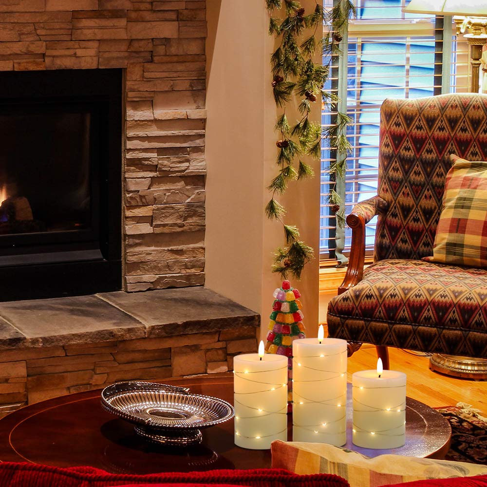 Dromance Flameless Flickering Candles String Light With Remote Timer Set Of 3 Battery Operated Led Pillar Candles Real Wax 3D Wi