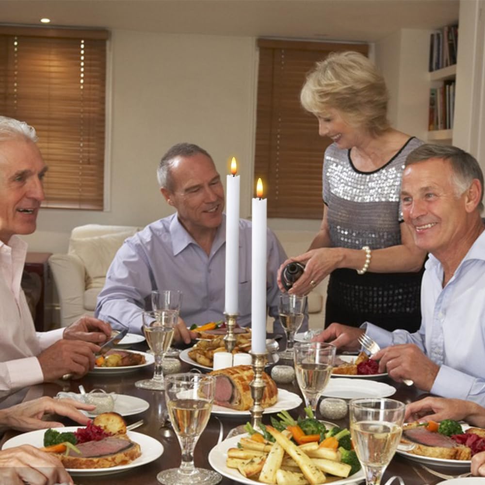 Dromance White Flameless Taper Candles Battery Operated With 6H Timer, Real Wax 3D Wick Flickering Led Taper Candles Dinner Wedd