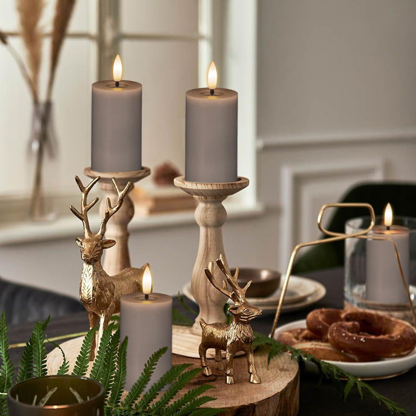 Eldnacele Flameless Pillar Flickering Led Candles Set Of 6, Remote Control And Timer, Battery Operated, Real Wax, 3D Wick, Gray,