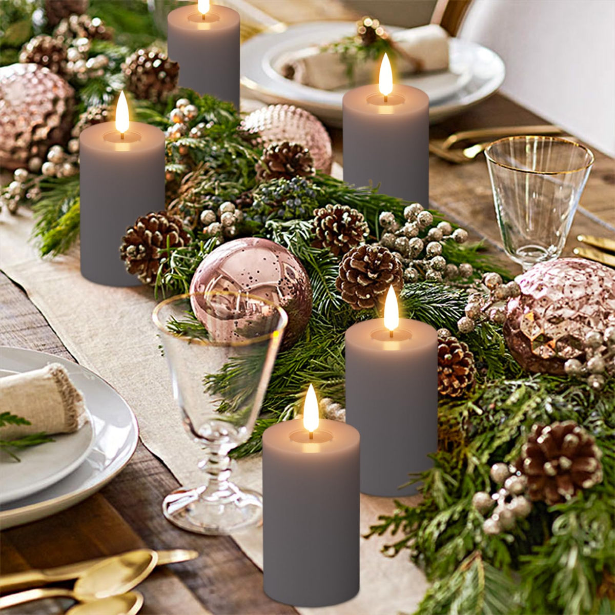 Eldnacele Flameless Pillar Flickering Candles With Remote And Timer, Battery Operated 3D Wick Real Wax Led Candles Set Of 6 Gray Candles Christmas Holiday Decor Wedding Home Indoor Decorations