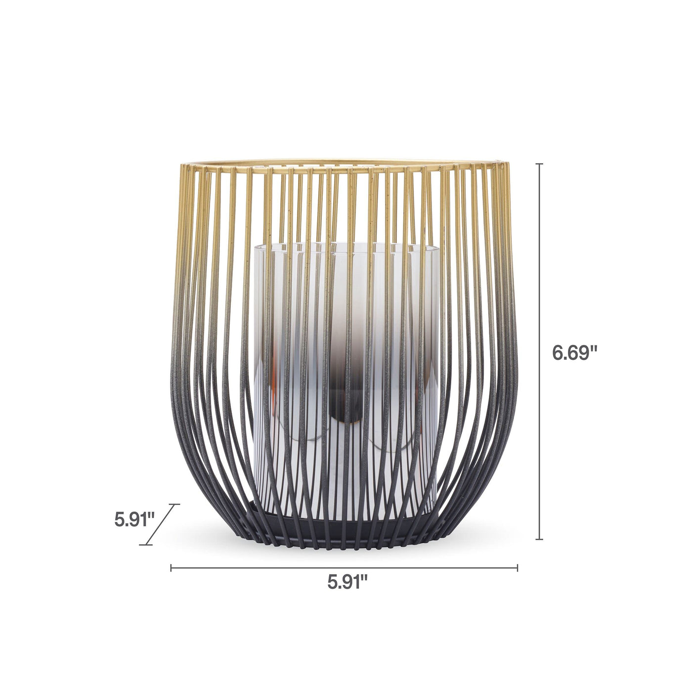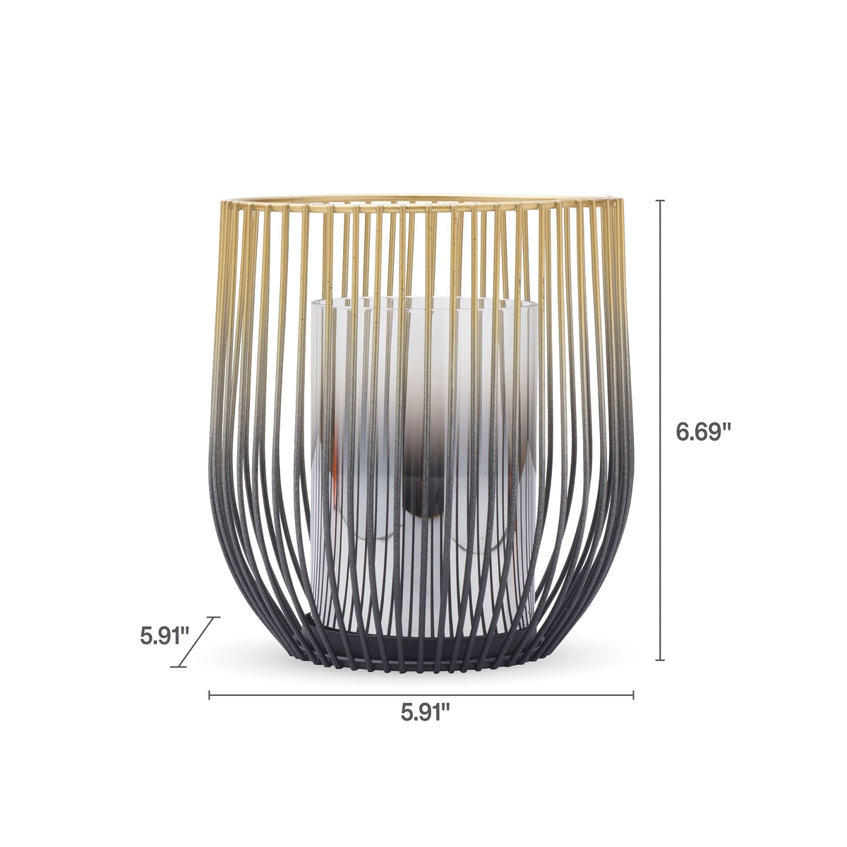 Elements 6.1X6.1X6.89 Inch Gold And Black Wire With Clear Glass Candleholder, For Use With Wax Or Flameless Candle