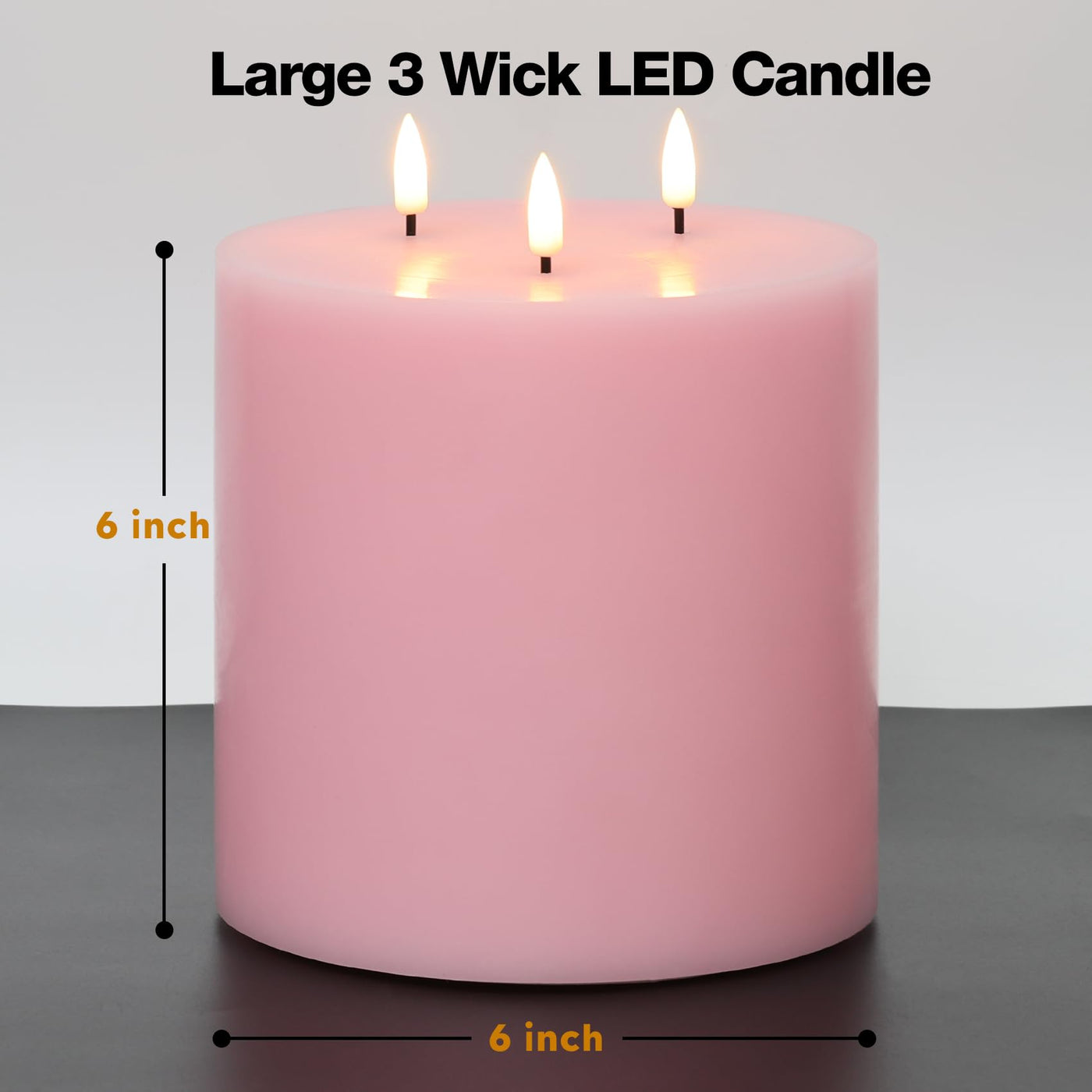 Eywamage Pink 3 Wick Flameless Pillar Candle With Remote Control, 6X6 Inch Large Led Candle Realistic Flameless Candles - Coated With Real Wax, The Newest Flame Stimulation Technology Makes These Led Candles With So Realistic Wick And Flickers So Beautifully And Convincingly, Bringing A Realistic Flame Experience That You And Your Guests Will Be Definitely Impressed.Convenient Remote Control - You Don'T Leave Your Cozy Bed To Open/Close These Candles Manually, All Candles Are Easily Operated Through The Remote Control( On/Off,2/4/6/8 Hours Timer,Set Flickering/Static Flame Effect ).Pretty Design & Safe Decorations - Candles Are Decorated With Beautiful Patterns And Flickering Lights, These Flameless Candles Are Battery Operated, No Fire Risk, No Smoke, No Unpleasant Scent Or Or Messy Dripping Wax, Perfectly Applied To Christmas, Wedding, Home Decor, Date, Birthday, Holidays Etc Battery Operated Candles - Each Candle Is Powered By 2 Aa Batteries (Not Included), Lasting Over 350 Hours, Led Bulb Works For 50000+ Hours.Package Includes:-1 Piece 6X6 Inch Three Wick Led Candle- 1 X Remote Control( 1X Cr2025 Coin Battery Included)- 1 X User Manualwarm Tips: This Candle Is Made Of Real Wax, Please Keep Out Of Direct Sunlight, Away From Heat Sources And Out Of Extreme Temperatures Or Your Candle May Soften Or Melt.