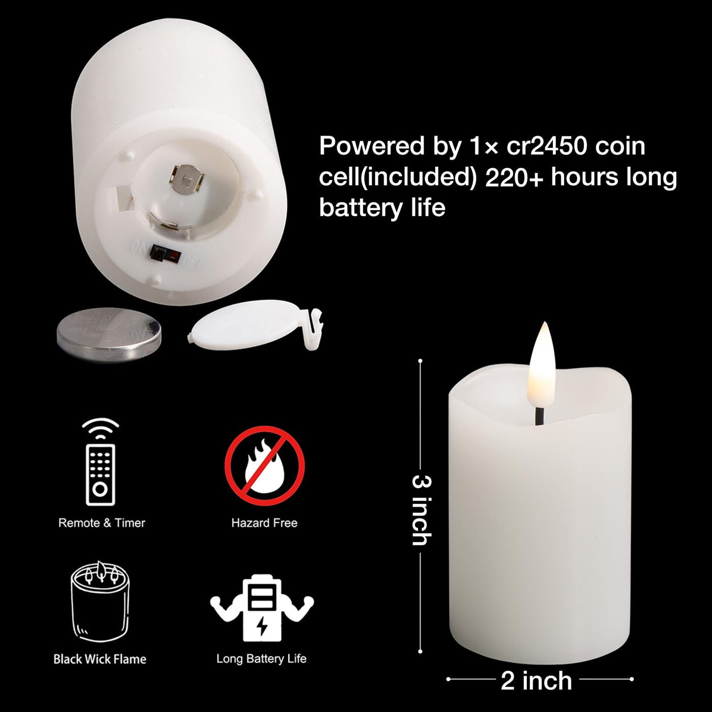 Eywamage White Flickering Flameless Led Candles With Remote, Real Wax Battery Operated Candles Set Of 6These Electric Led Candles Are Made With Real Wax And 3D Still Flickering Flame That Gives Off A Warm, Natural-Looking Glow, A Perfect Addition To Your Home Or Special Occasions, Like Christmas, Wedding, Party, Dinner, Datewhy Choose Eywamage Flameless Led Candlesmost Realistic - These Led Candles Is Coated With Paraffin Wax, Simulated With Flickering 3D Black Wick, It Is Too Realistic To Fool Your Eyes Especially Lit Up-Long Battery Life & Battery Included - Each Candle Takes 1Xcr2450 Coin Cell ( Included), Which Provides 400+ Hours Continuous Light Convenient Remote & Timer Function - Remote Controller Allows You To Control All Candles Within 20 Ft, Including Turning Candles Onoff, Set 2468 Hours Timer, Adjust Brightness, Set Flickering Effectgreat Decoration & Gift - These Battery Candles Give Off A Soft Warm Glow, Bringing The Most Realistic Experience To Any Room And A Candly Vibe In The Room While Flameless, Dripless, Smokeless, Windproof, Great Decoration For Home, Seasonal Festival Holiday, Party And Also Ideal Gifts For Birthday, Holiday, Housewarming Etcpackage Included - 6 X White Led Candles (Size: D 2 X H 3), 1 X Remote Controller And User Manualmore Tips:-This Candle Is Made Of Real Wax, Please Keep Out Of Direct Sunlight, Away From Heat Sources And Out Of Extreme Temperatures Or Your Candle May Soften Or Melt