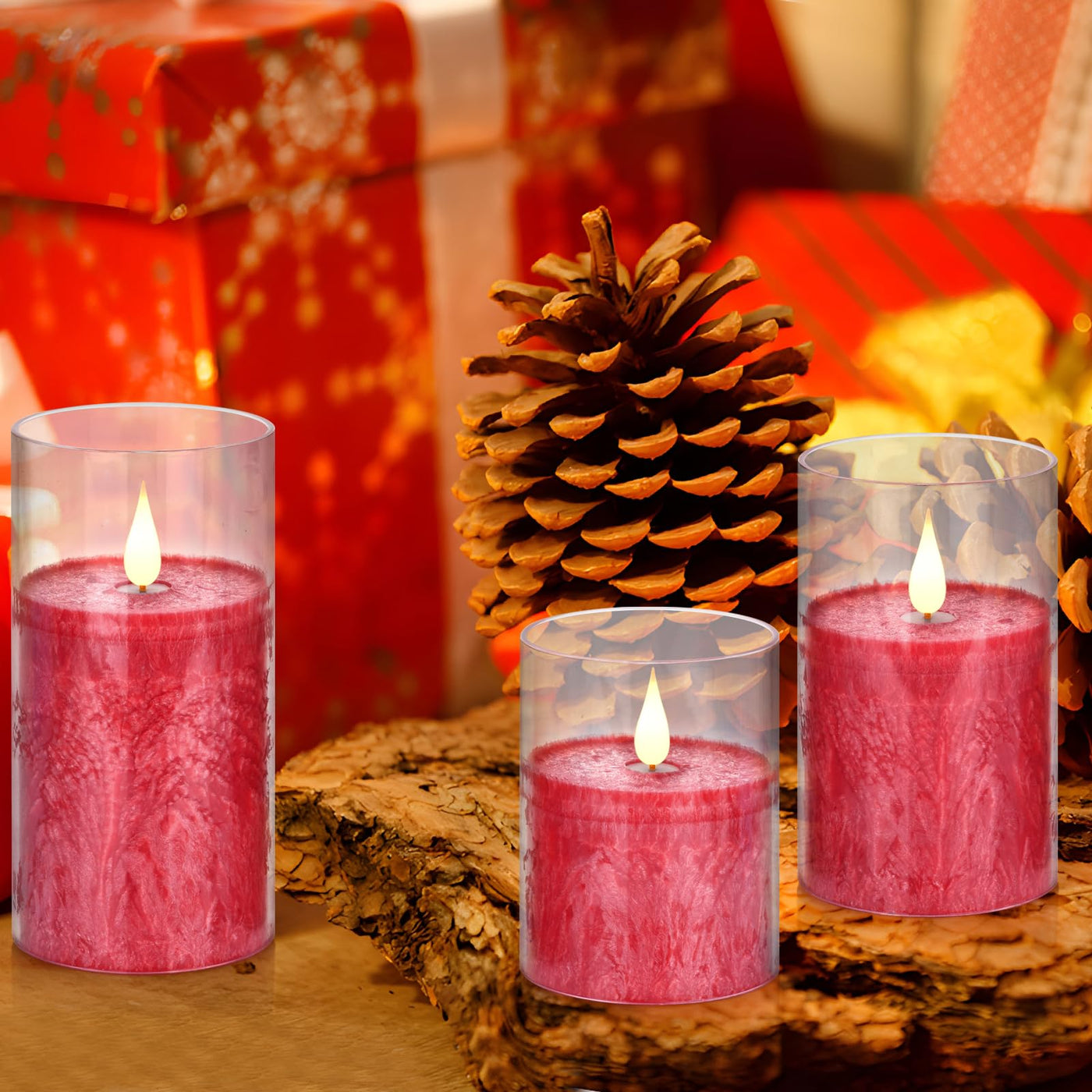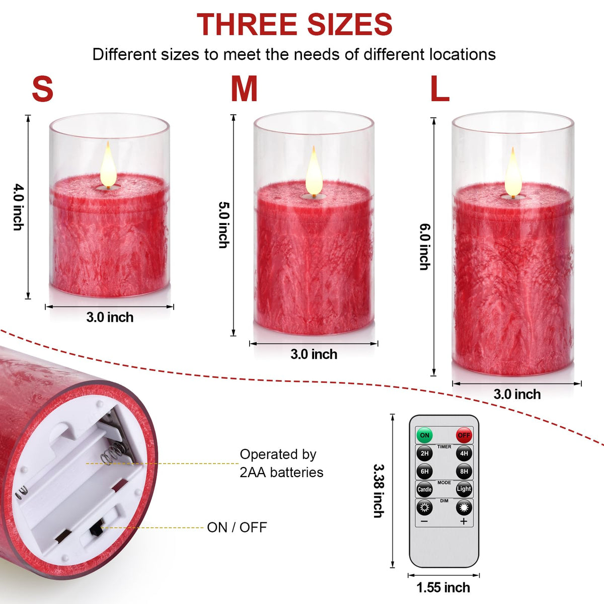 Flameless Flickering Remote Control Candle, Glass Pillar Candle,3 Pack (D:3''?H:4'' 5'' 6'') Led 3D Flame Romantic Candle,Batter
