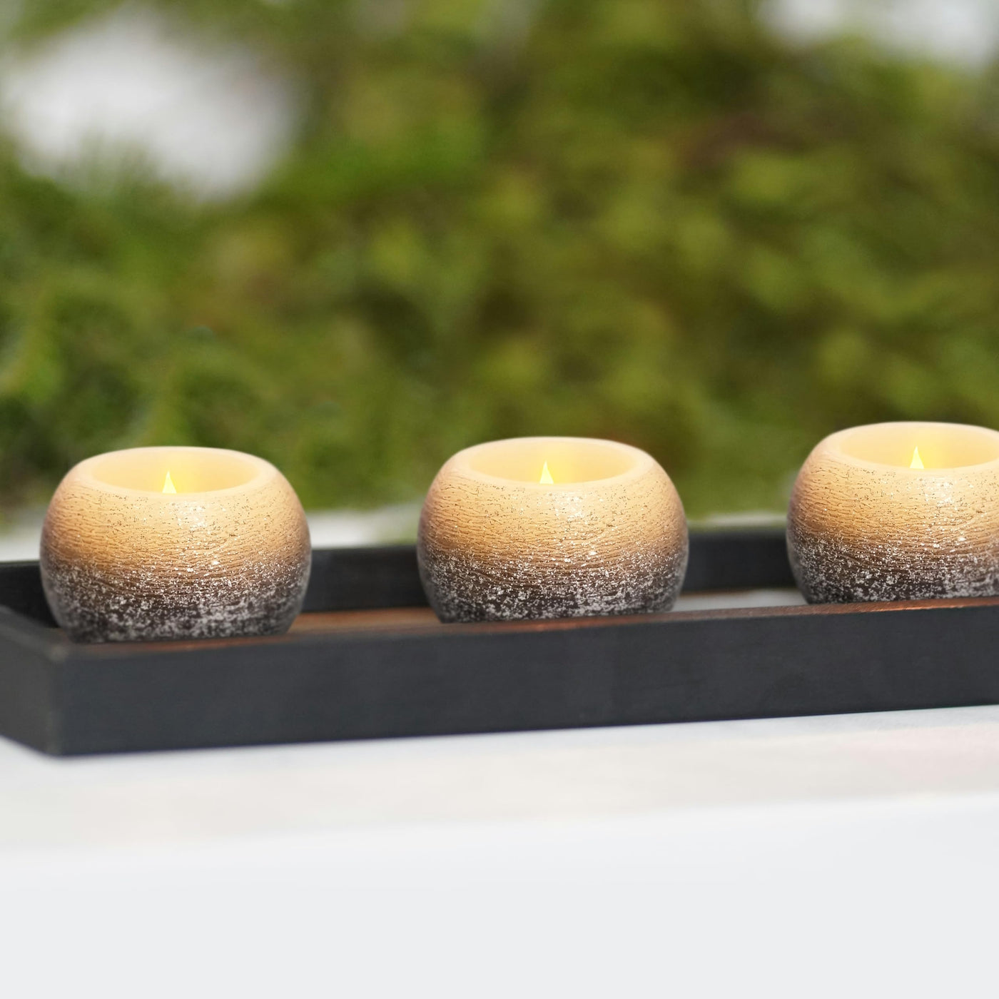 Furora Lighting Black Glittery Real Wax Flameless Candles Pack Of 3, Led Flickering Round Candles Perfect For Wedding D?Or, 2.4?