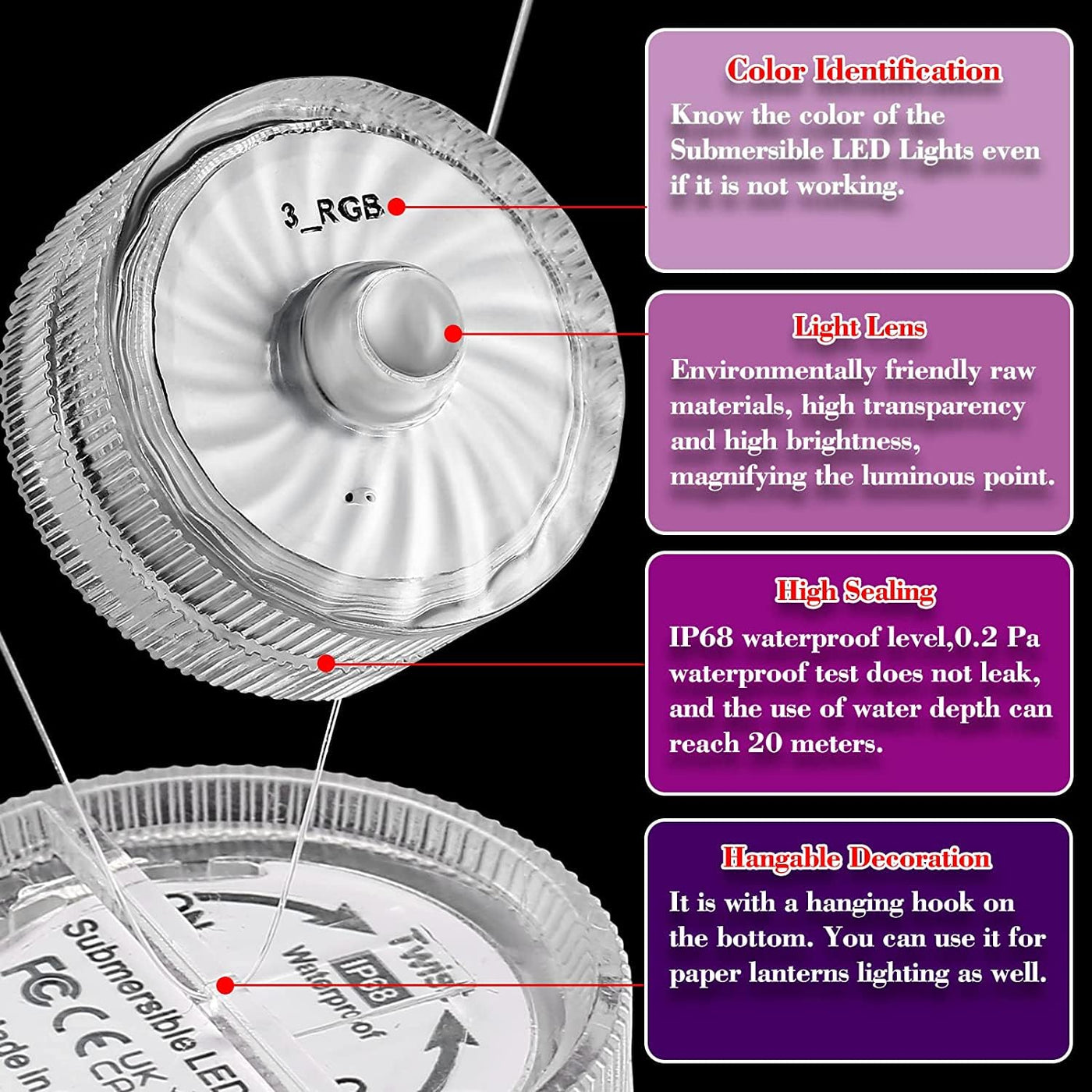 Mini Led Submersible Lights Featuring A Waterproof Housing And Replaceable Batteries, Simply Place Them In A Clear Glass Vase For Instant Color And Ambiance, Or Hang Them Anywhere You Want To Enhance The Ambiance With A Thin Wire Through The Small Hole At The Bottom. Aquariums, Vases, Table Centers, Weddings, Birthdays, Pools Or Other Special Events - This Submersible Light Creates A Relaxing And Enjoyable Atmosphere For You.