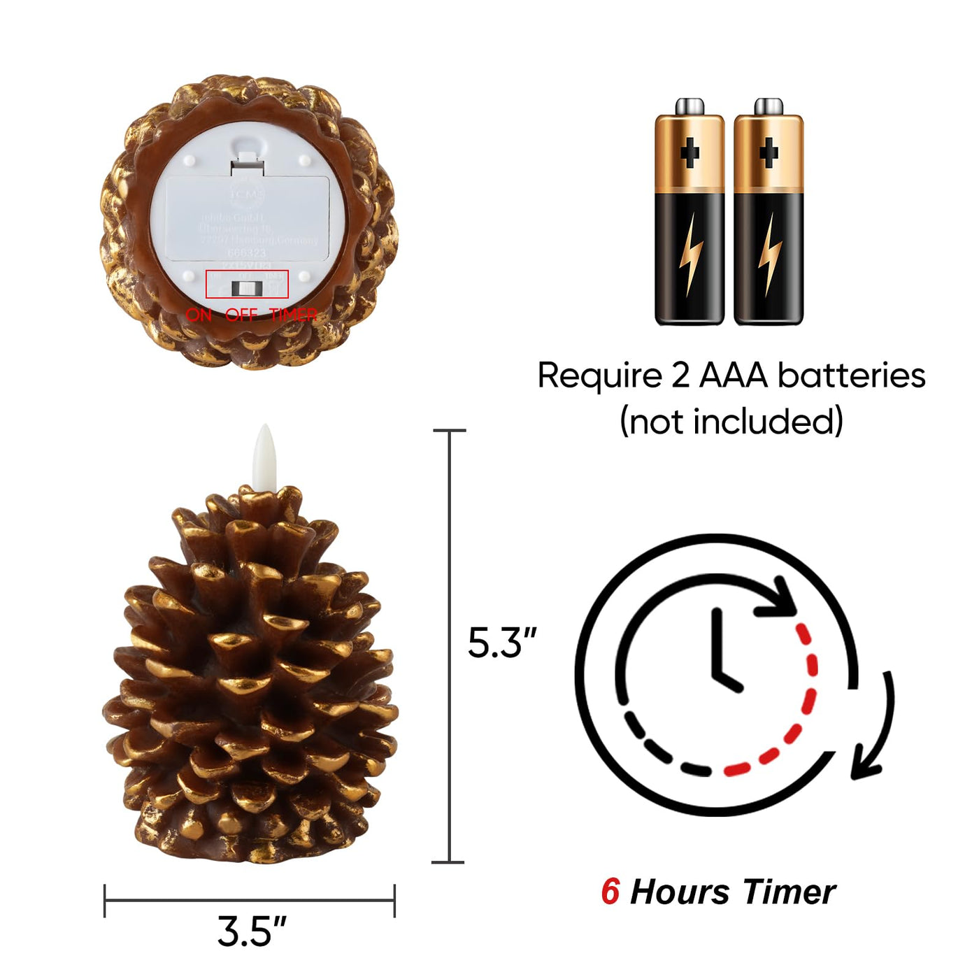 Homemory Flameless Pine Cone Candles Real Wax, Led Candles With 6H Timer, Fireplace Decor Battery Operated Flickering Wick For Holiday Indoor Decoration, Set Of 2, Brown(D3.5 X H5.3 Inch)