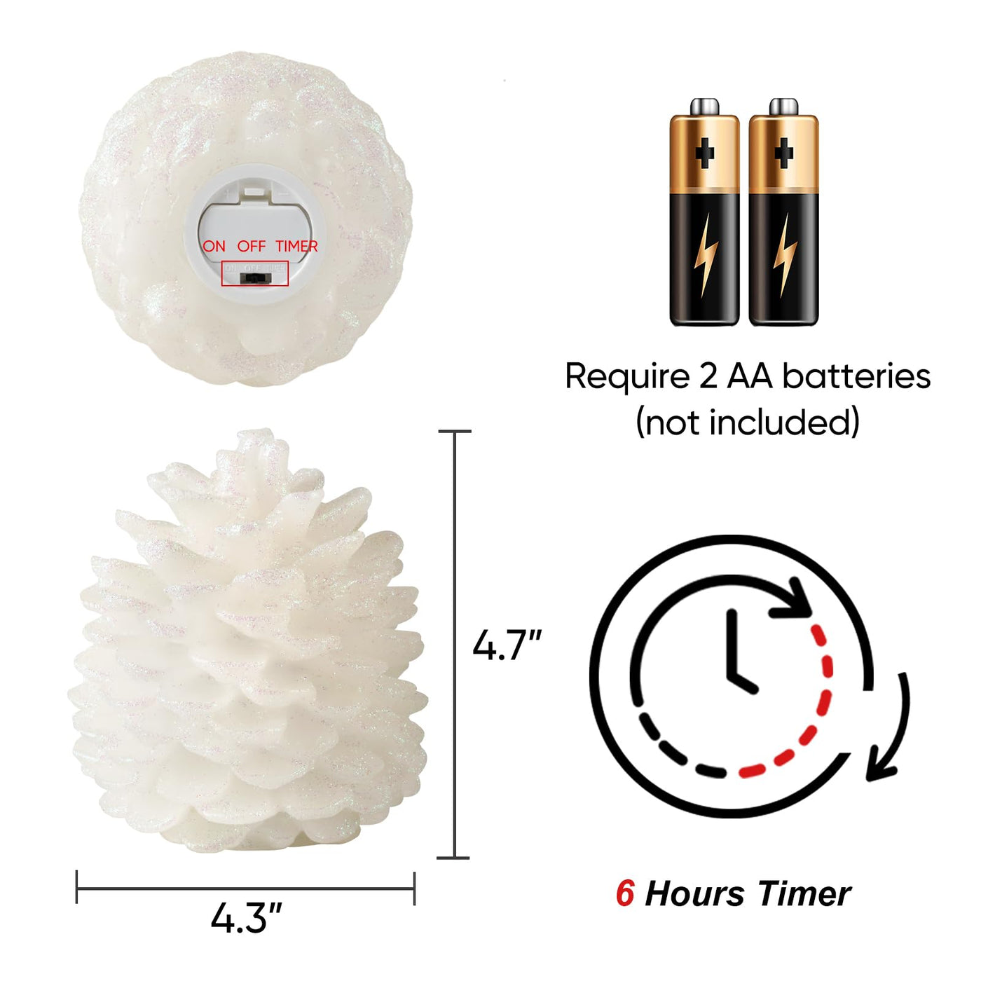 Homemory 2 Pcs Pine Cone Candles Flameless, White Led Flickering Candles With 6 Hours Timer, Battery Operated Candles For New Ye