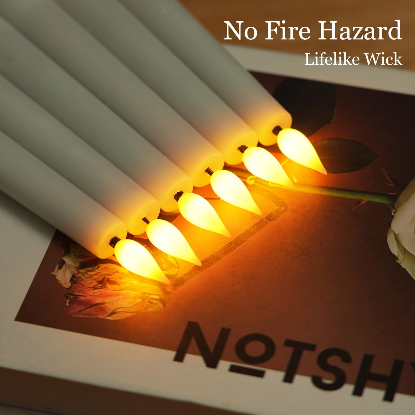 Q: Can I use these candles outdoors or in humid environments?A: It is recommended to avoid using the flameless taper candles in high-temperature or high-humidity environments to ensure optimal performance and longevity.