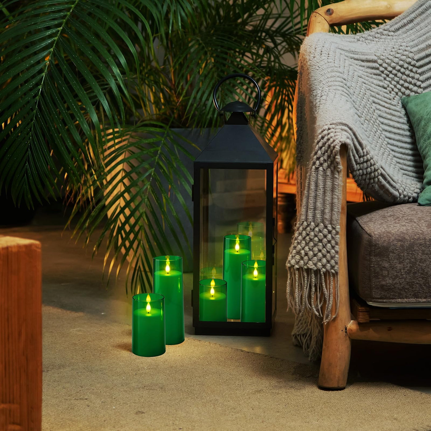 Homemory Green Flickering Flameless Candles, Battery Operated Acrylic Led Pillar Candles With Remote Control And Timer, Set Of 5
