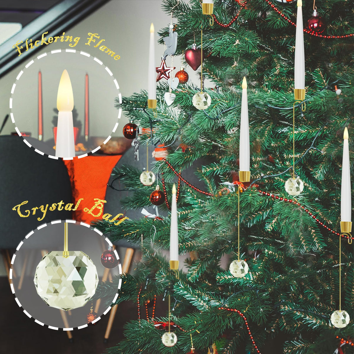 Enhance Your Christmas Tree With Our Led Candles For Christmas Tree, Which Come With Clear Crystal Ball Hooks. The Glass Crystal Ball Complements The Realistic Glow Of The Candlelight, Enhancing The Festive Atmosphere Of Your Home. Each Set Of These Christmas Electric Candles Includes An Easy-To-Use Remote Control, Allowing You To Effortlessly Turn The Candles On And Off, Set A Timer For 2, 4, 6, Or 8 Hours, Switch Between Steady And Flickering Modes, And Adjust The Brightness. (We Provide Batteries For The Remote Control) With A Realistic 3D Flame Effect, Without Smoke, Flames, Or Melting, Our Christmas Tree Battery Operated Candles Blend Seamlessly With Your Other Holiday Decorations To Create An Eye-Catching Christmas Atmosphere. Installation Is A Breeze Thanks To The Simple Hook Design, Making It Easy For Anyone, Even Kids, To Help Decorate Your Christmas Tree. Putting Safety And Quality First, Our Flameless Taper Candles For Christmas Are Designed To Be Child And Pet Safe, And Are Backed By Our Reliable After-Sales Service, Ensuring Peace Of Mind And Assistance When Needed.