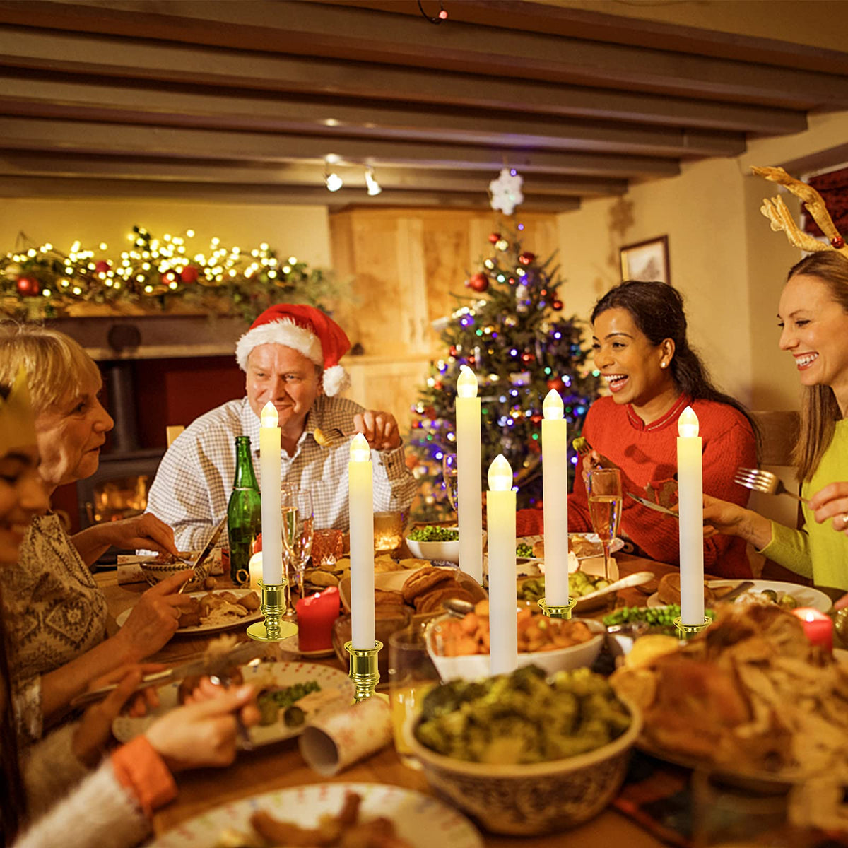 Christmas Window Candles Decoration: Flameless Led Candles They Emit A Warm Glow. These Electric Candles Have No Open Flame, No Dripping Wax, No Smoke, And No Peculiar Smell. They Look No Different From Real Candles And Are Very Real. Very Suitable For Thanksgiving , Christmas, Dining Room, Party, Wedding, Living Room, Bedroom And Other Holiday Decorations And Decorations In Daily Life. Led Candles With Remote And Timer: The Switch Button Must Be Turned On Before Use. With A Built-In Timer For 2/4/6/8 Hours And It Will Automatically Repeat Every 24 Hours, So Don'T Worry About Forgetting To Turn It Off. The Candle Light Has 2 Modes Of Flash And Constant Light, And 3 Levels Brightness Can Be Adjusted. The Remote Control Distance Is 5M (16.4Ft). Battery Operated Window Candles With Holder: Each Led Window Candles Light Need 2 Aa Battery(Batteries Not Included). It Is Safer And Convenient Than Candle Lights That Require Wires. With Candle Holder And Suction Cup, They Can Be Ideally Used As Restaurant Candles, Window Candles, Fireplace Candles, And Party Light Candles Place It In The Dining Room, Window, Bedroom, Living Room Anywhere. Perfect Christmas Decoration: Christmas Once A Year, We Must Not Miss The Family Gathering. Christmas Window Candle Lights Can Perfectly Decorate The Dinner Party To Make The Atmosphere Warmer, And Can Be Safely Placed On The Windows And On The Dining Table. Make Our Christmas More Romantic. Complete Package And Operation: Package Includes 12 Candles, 12 Gold Candle Holders, 12 Suction Cups, 2 Remote Control With Timer. Just Put The Battery In The Candle, Press The Switch Button, And Then Use The Remote Control To Set The Desired Mode. There Is A Manual Switch Button At The Bottom Of Each Candle.