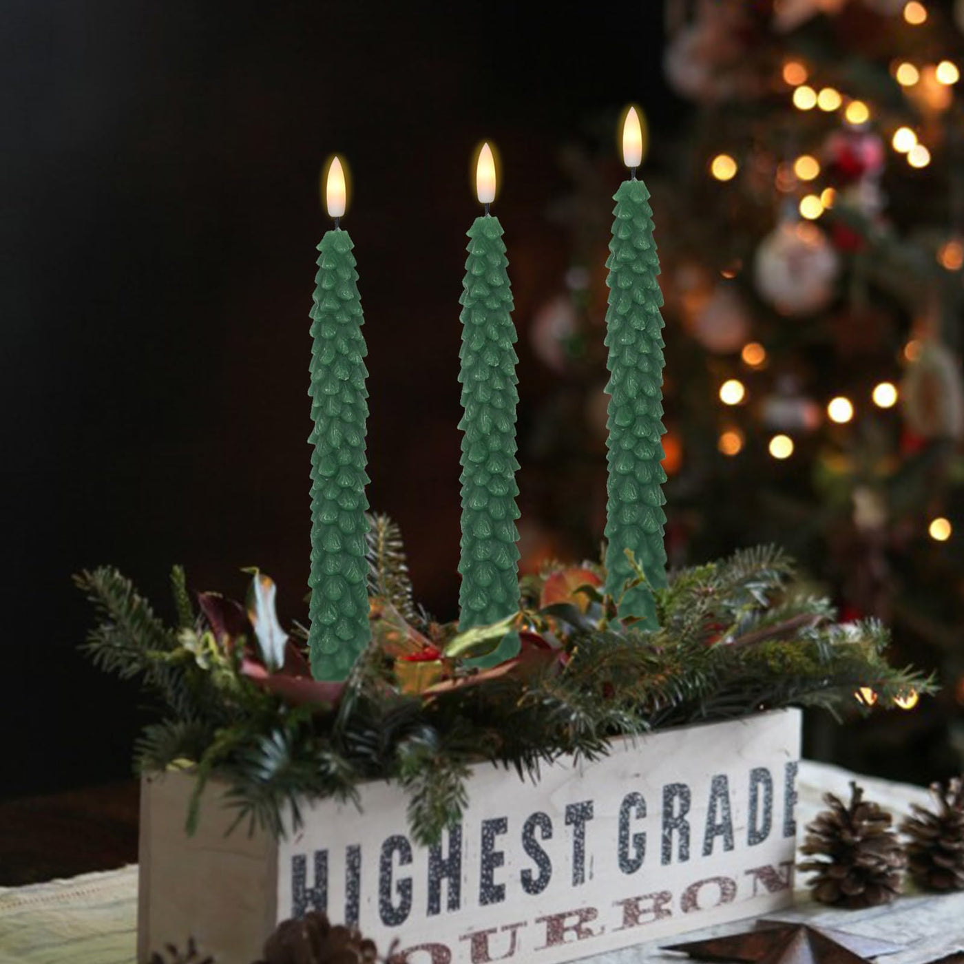 Kunswenn Led Christmas Tree Shaped Candles With Remote And Timer, 4 Pack Real Wax Christmas Battery Taper Candles, Green Taper Candles Battery Operated For Christmas Indoor Table Centerpieces Decoration