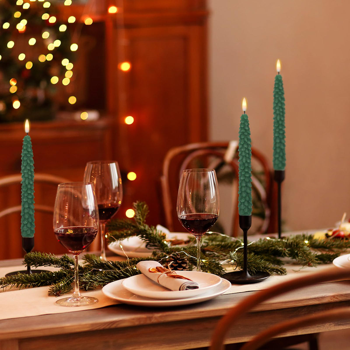 Kunswenn Christmas Tree Taper Candles Battery Operated, 4 Pack Christmas Taper Candles With Remote Timer, Green Real Wax Led Fla