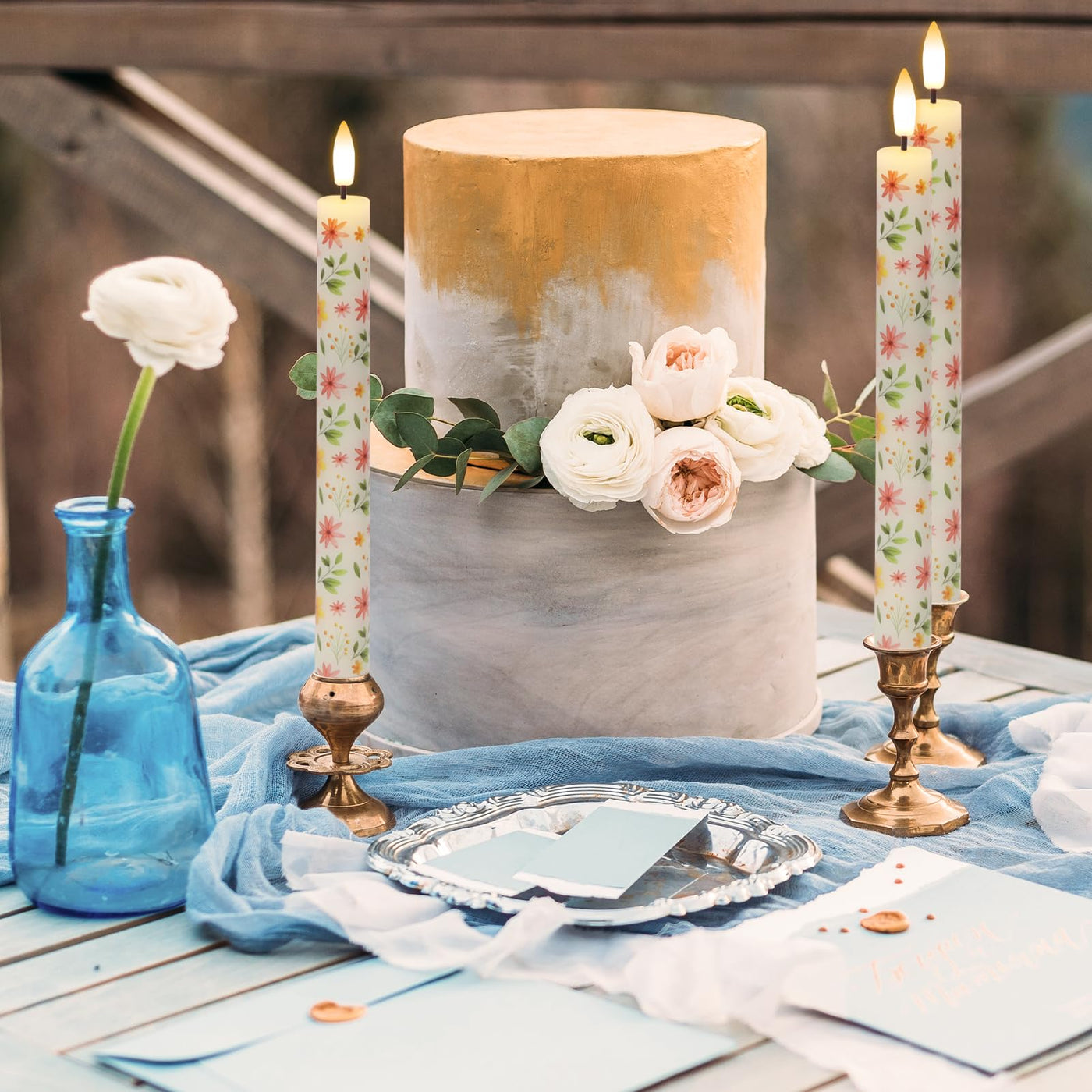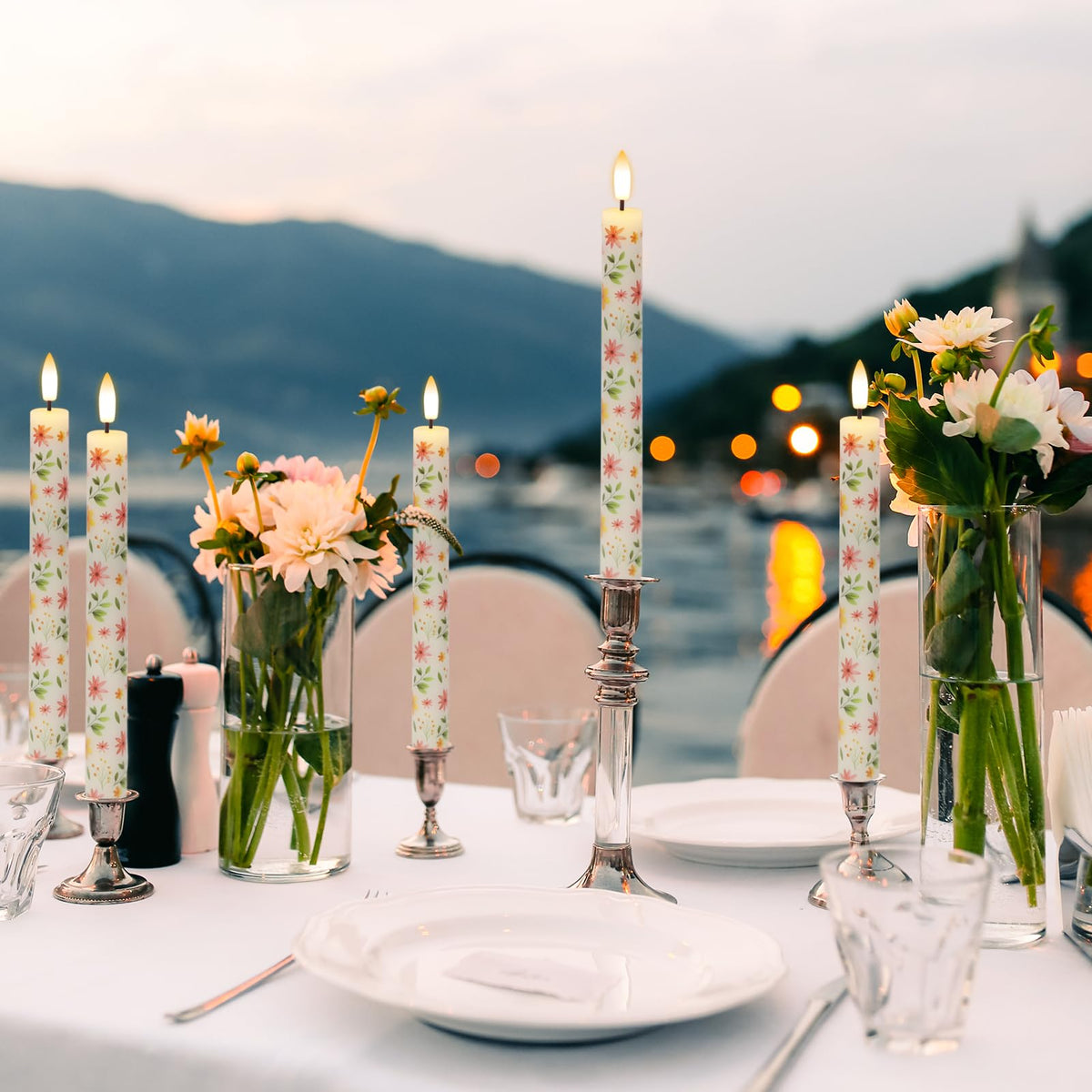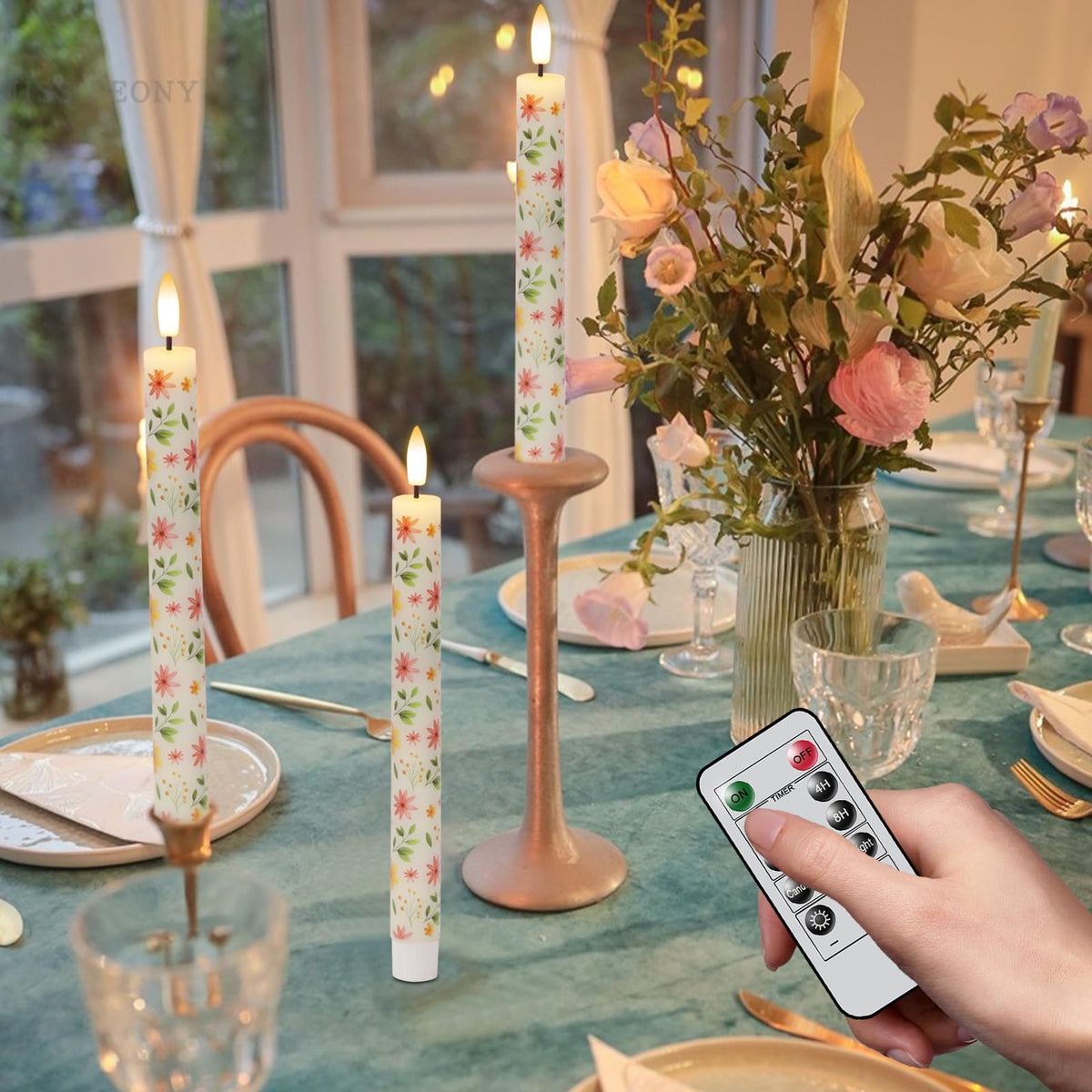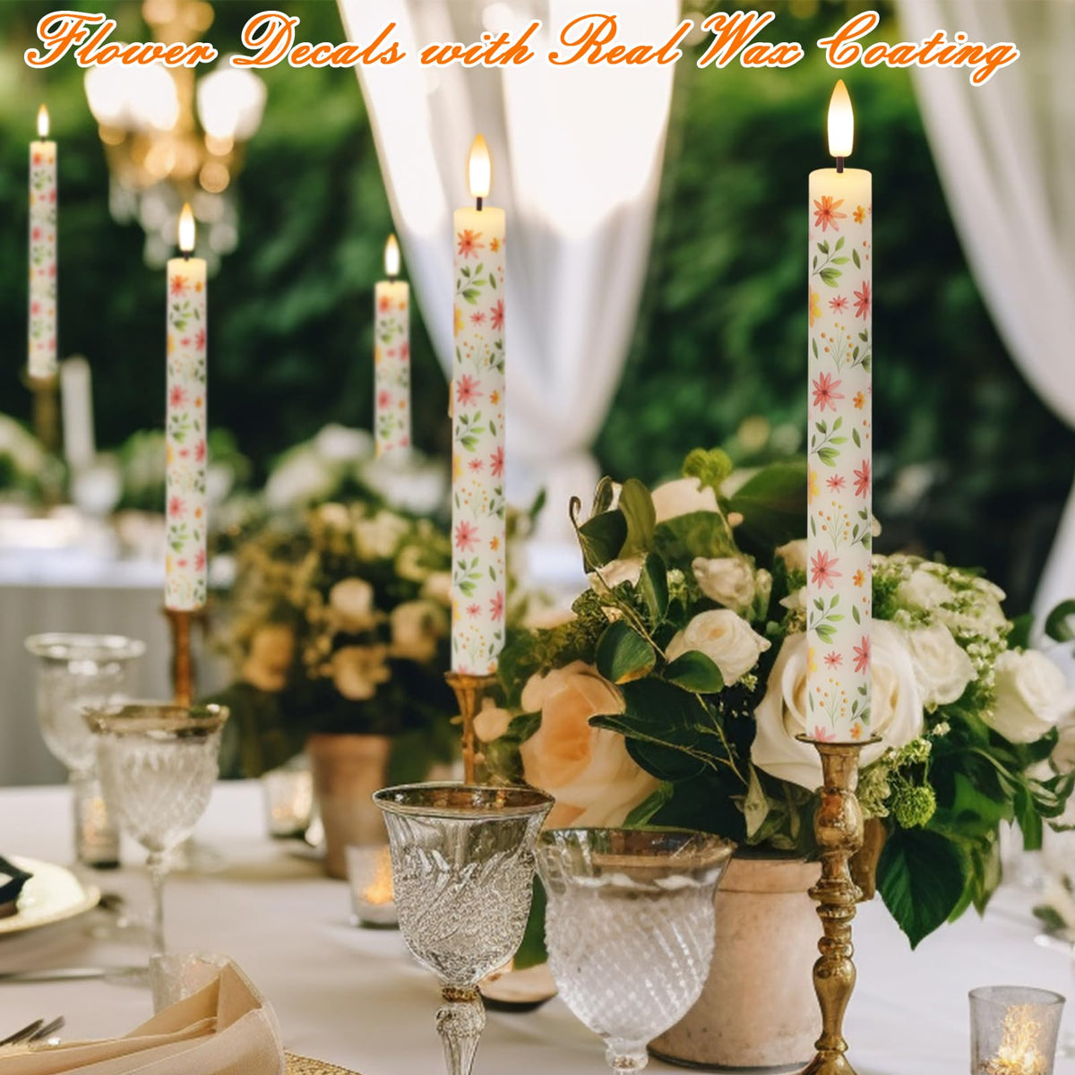 Kunswenn Flameless Taper Candles With Remote Timer, 4 Pcs Spring Flowers Led Taper Candles Battery Operated With Decals,Timer Flameless Candlesticks With Flowers Decals For Valentine'S Day Wedding Home Decor(0.75 X 9.65 )
