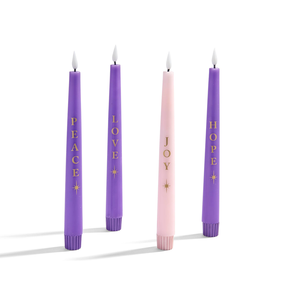 Lamplust Flameless Advent Candles Set Of 4 With Words, 9 Inch Purple & Pink Flameless Candles, Flameless Taper Candles For Adven