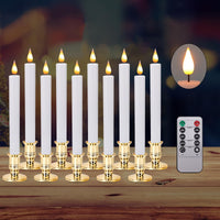Q: What occasions are these LED candles suitable for?A: These LED flameless candles are perfect for various occasions including weddings, birthdays, anniversaries, Christmas, and home decor. Their elegant gold base and flickering light create a warm ambiance suitable for any celebration.