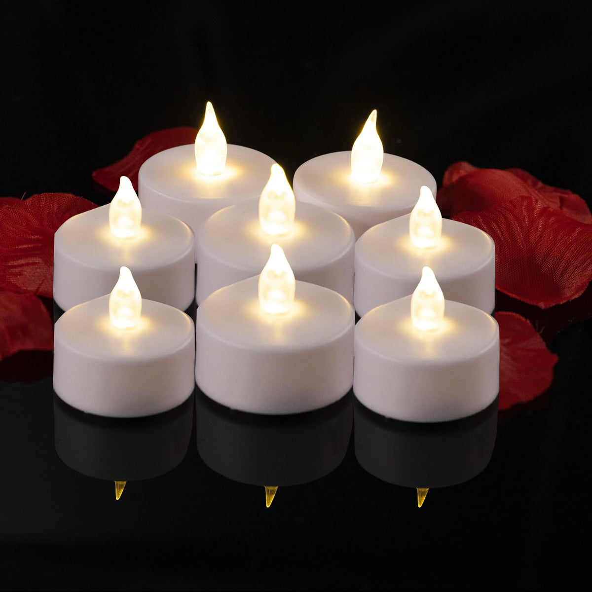Q: What are some ideal occasions for using these LED tea lights?A: These flameless candles are perfect for various occasions such as weddings, holiday parties, birthdays, and home decor, creating a warm and romantic atmosphere.
