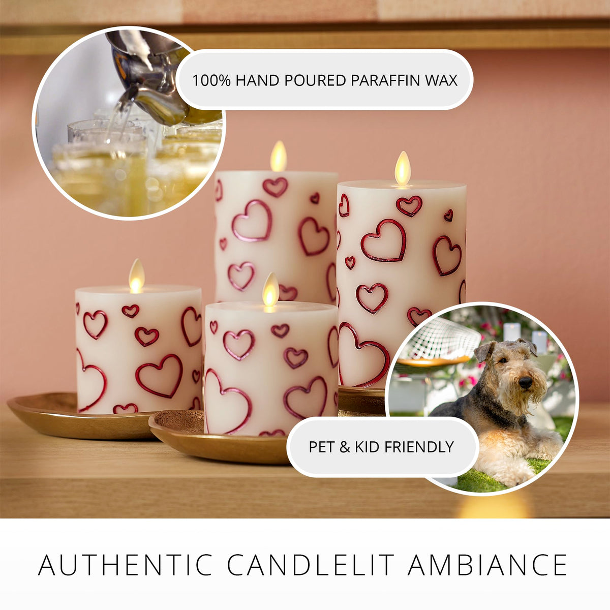 Luminara Debossed Hearts Pillar Candle Metallic Red Patented Flickering Flameless Technology Valentine'S Day Collection Re