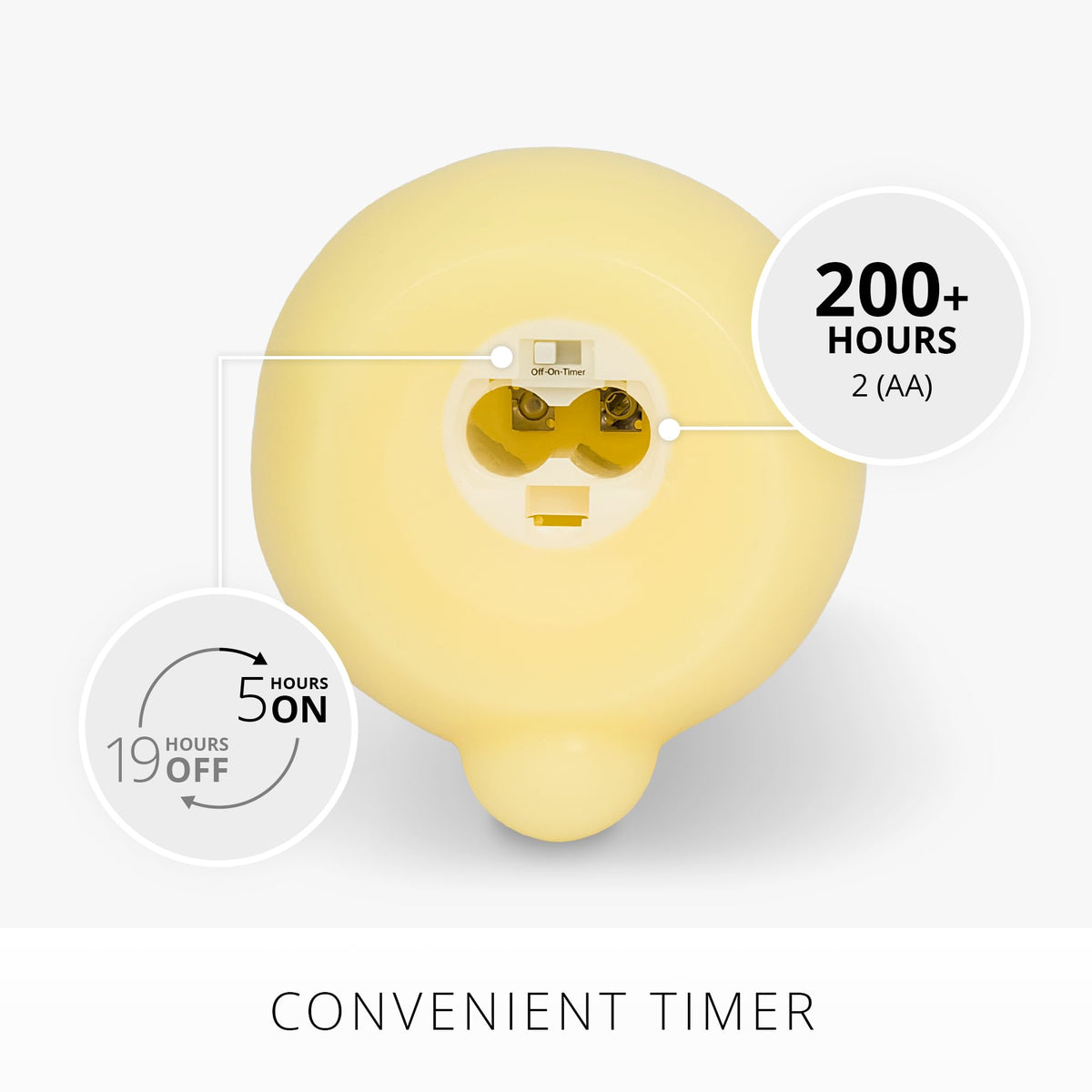Q: How does the Flickering Real-Flame technology work in these candles?A: The patented Flickering Real-Flame technology combines warm white LED light with a magnetized plastic flame piece, creating authentic movement and a convincing flame effect that enhances your Easter decor.