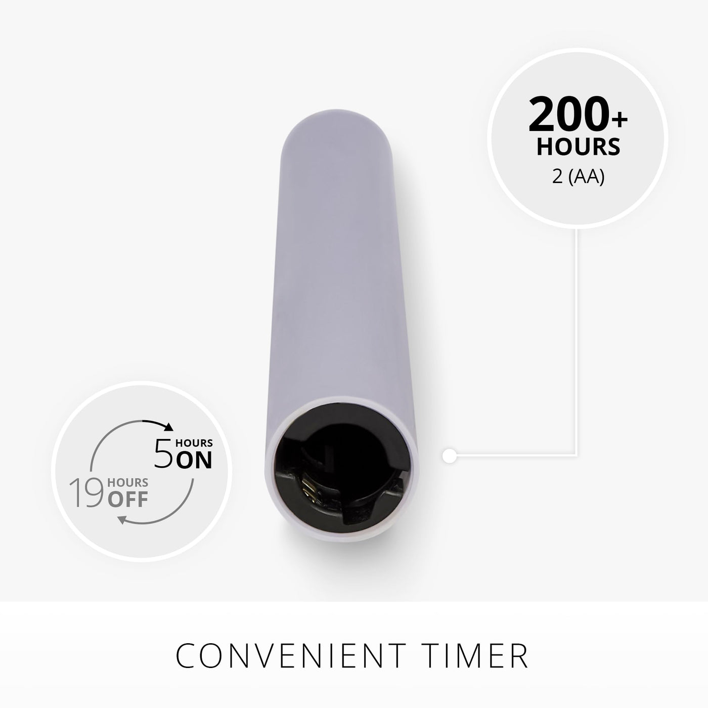 Q: How long do the Luminara Flameless Candle Taper batteries last?A: Each Luminara Flameless Candle Taper is powered by 2 AA batteries (not included) and provides up to 200 hours of safe and long-lasting illumination.