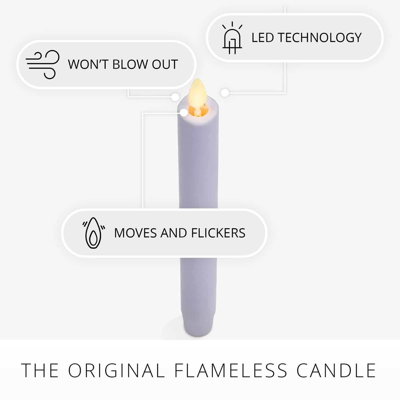 Luminara Flameless Candle Taper (1'' X 9.5'') Melted Top Real Wax Unscented Remote Ready Timer (Gentle Lavender)