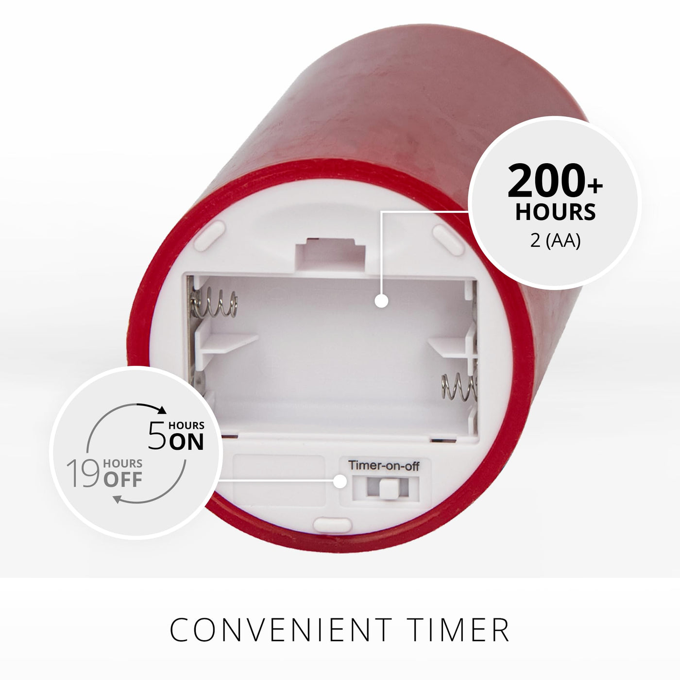 Enjoy The Cozy Glow Of Candles Without Any Of The Fuss! At This 3'' In Diameter And 4.5'' In Height, This Real Flame-Effect Candle Isn'T So Small It Disappears Into The Background, But Not So Big It Dominates The Room. This Style Of Flameless Candle Is Capable Of Being Operated By A Remote (Sold Separately). It Is Turned On And Off By A Switch On The Bottom, Which Also Activates The Timer. | Luminara Flameless Led Moving Flame Pillar Candles Are Made With 100% Pure Paraffin Wax, Hand Poured And Carefully Designed To Look Like Traditional Candles. They Are Safer To Use Than Traditional Candles, Since No Actual Combustion Or Wax Consumption Happens. That Means No Soot Or Chemicals Are Released Into The Air, Making Them Perfect For Use Indoors. They'Re Perfect For Households With Small Curious Children And Rambunctious Pets. | The Light Is A Warm White Color Encased In A Yellow Flame Designed To Be As Realistic As Possible. It Automatically Flickers When You Turn The Candle On, Increasing The Realism. Available In 4.5'' And 6.5'' Heights With Burgundy Color. Perfect For Year-Round Use, They Will Go With Just About Any D