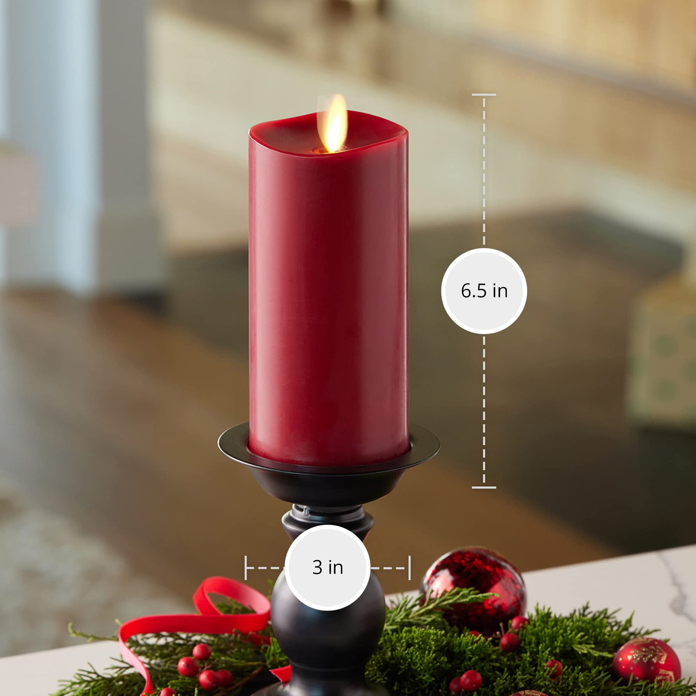 This Classic Luminara Burgundy Pillar Is The Essential Centerpiece For All Your Candle D Cor Needs. This Flameless Candle Features A Melted Edge. We Selected This Red Modern Melted Design To Showcase The Dancing Real Flame-Effect From All Angles, Ensuring Endless Decorating Possibilities! Product Features Size: 3.0'' Width; Available In 4.5'' And 6.5'' Heights Color: Burgundy Edge: Melted Top Form: Pillar Scent: Unscented Finish: Smooth Material: Paraffin Wax Use: Indoor Led Technology: Real Flame-Effect On/Off/Timer Operation: Switch On Bottom Of Candle Timer: 5 Hours On/19 Hours Off Remote Ready: Yes Remote Included: No, Sold Separately Batteries Required: 2 Aa (Not Included) Battery Runtime: 200+ Hours