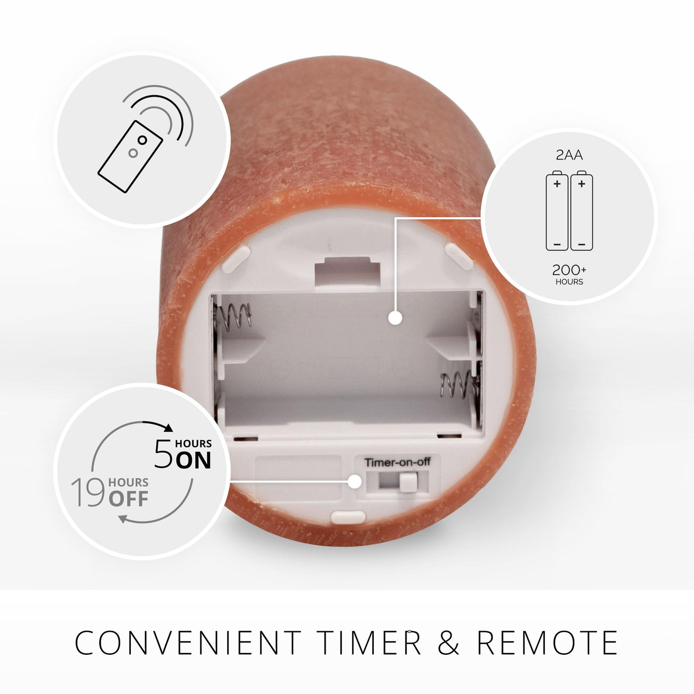 Luminara Sea Glass Flameless Candle, Adobe 3'' X 4.5'', Moving Led Flame Pillar With Timer, Battery Operated, Real Wax, Unscente