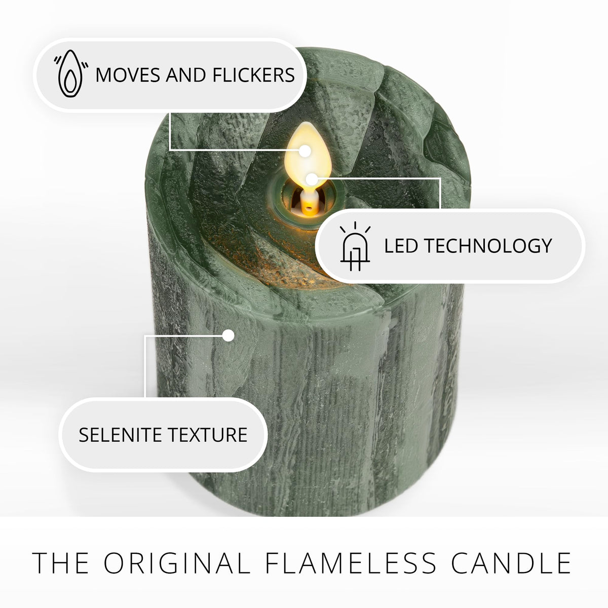 The Holiday Green Selenite Pillars Are A Modern Take On The Traditional Look Of Flameless Candle Pillars. Beautifully Crafted To Mimic The Organic Texture Of Crystallized Gypsum, The Emerald Pillars Are Available In Two Varying Sizes And Exude Understated Elegance While Complementing A Variety Of Holiday Seasonal D Cor. Complete With Authentic Moving-Flame Technology, The Luminara Holiday Green Selenite Pillars Can Be Safely Used On Nightstands Or Across Tablescapes Without The Worry Of Open Flames Or Hot Wax.